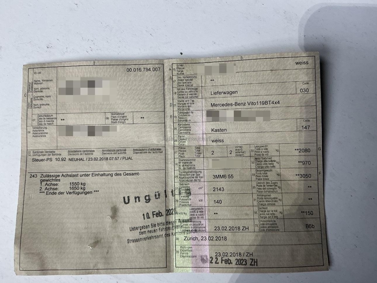| Fahrzeugausweis | Vorhanden |