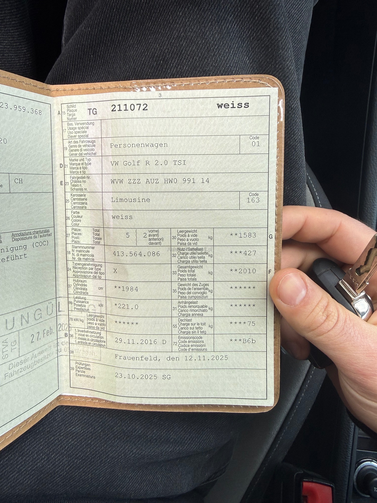 | Kommentar | Keine technische Prüfung (Werkstatttest) vorgenommen Diverse Schäden an Karosserie/Lack. Fahrzeug ist ab Platz, ohne Garantie Aktive Garantie "Swiss Basic100" bei Real Garant bis 24.10.2026 aktiv |
