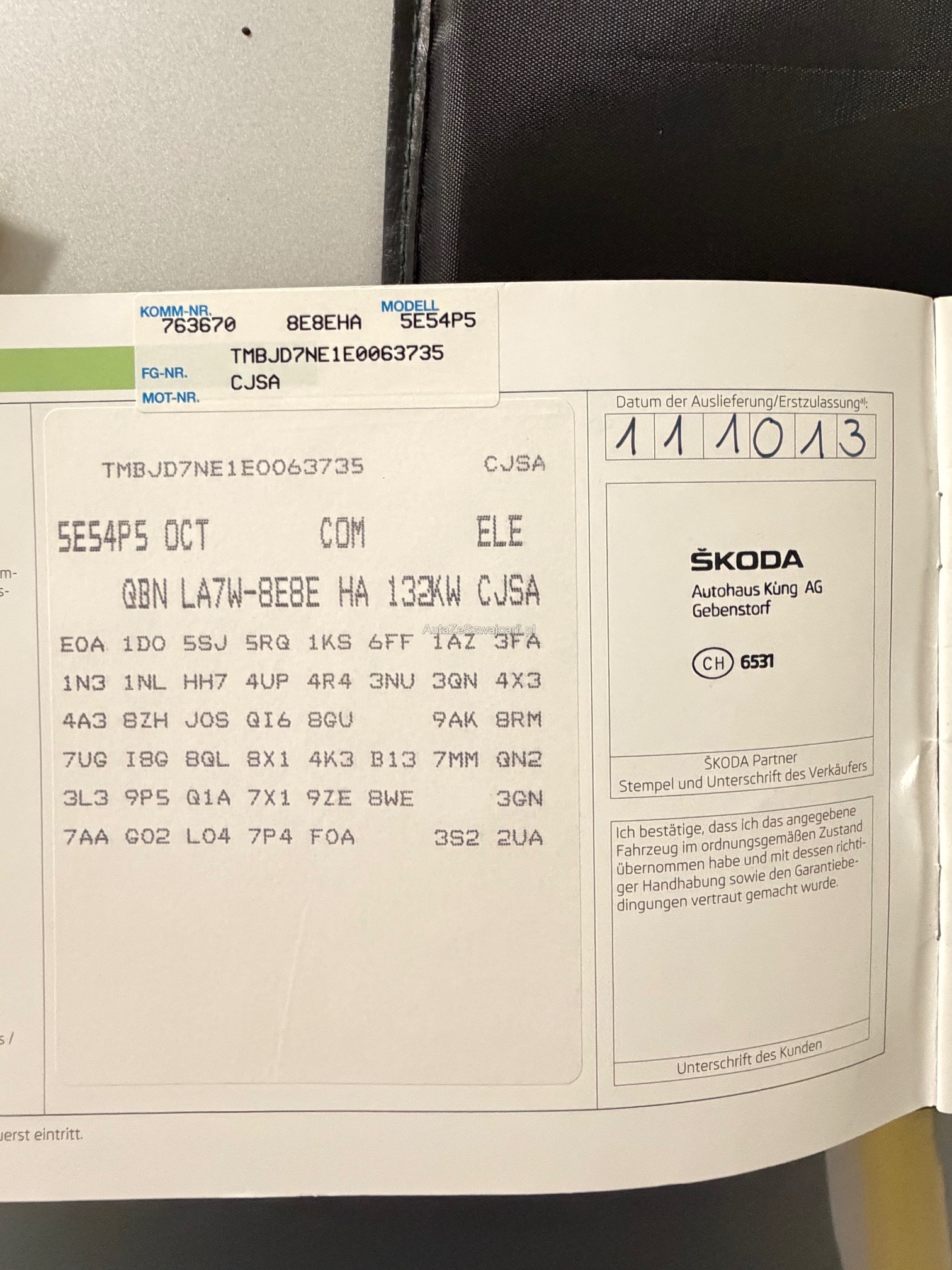 | Kommentar | Kein Werkstattest durchgeführt, kein Karrosserietest durchgeführt, kleine Beule vorne links siehe Foto, Fahrzeug fährt normal ohne Probleme, sehr gepflegt siehe Foto. |