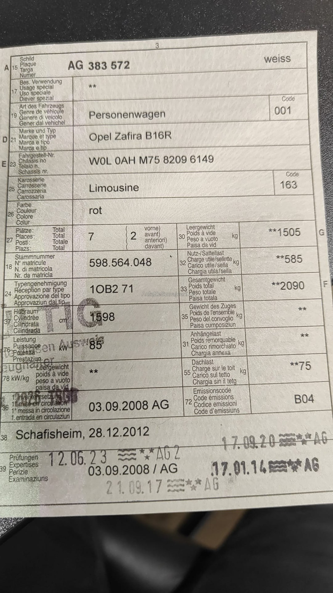 OPEL Zafira B16R