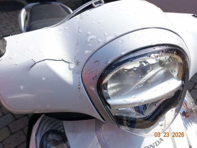 | Condition_and_Equipment | Zustand Fahrzeug ist fahrbar. Zweirad-Kategorie Roller --- Links Verschalung unten links verkratzt. Rechts Verschalung oben rechts gebrochen. Verschalung unten rechts gebrochen. Front Schutzblech vorne defekt. Gabel beschädigt. Weitere Beschädigungen Scheinwerfer gerieben |