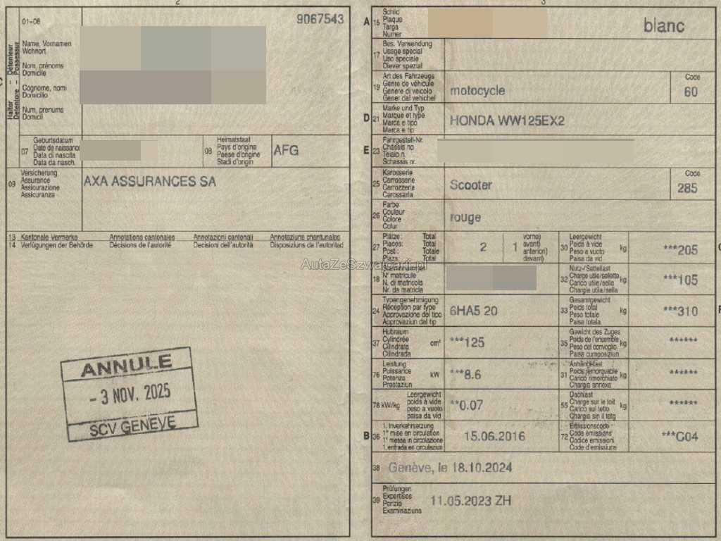 | Fahrzeugausweis | Vorhanden |