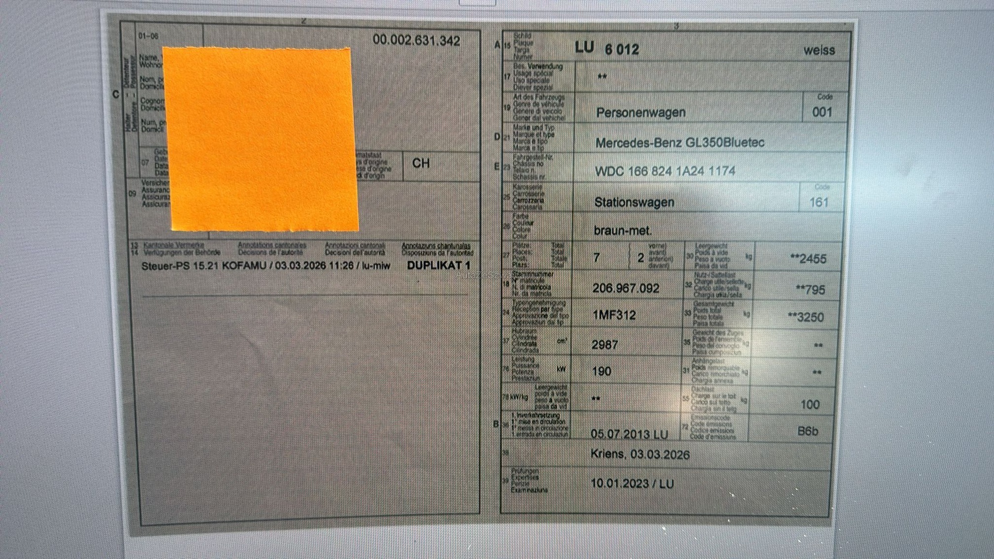 | Kommentar | Das Auto weist div. Schäden an der Carrosserie auf, siehe Fotos. |