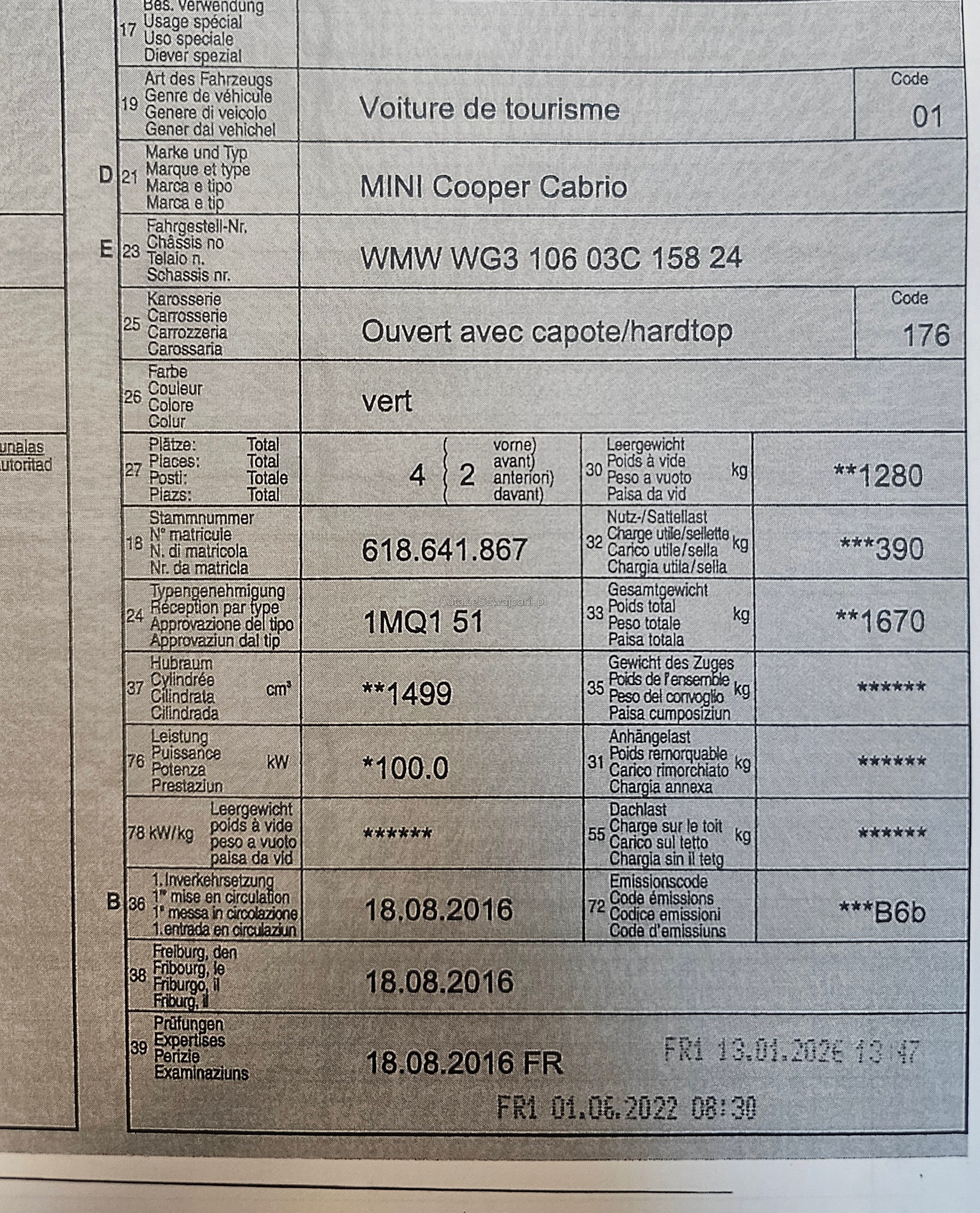 | Kommentar | Carrosserie hat etliche Kratzer (siehe Bilder), Siehe auch Rechnung betreffend Expertisenvorbereitung von Januar 2026 |