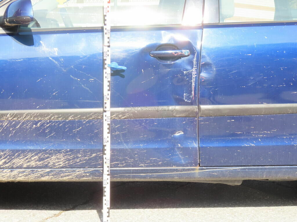 Porte avant gauche fortement enfoncée.