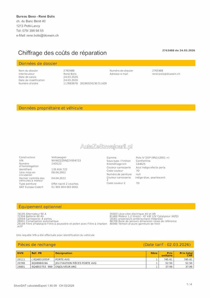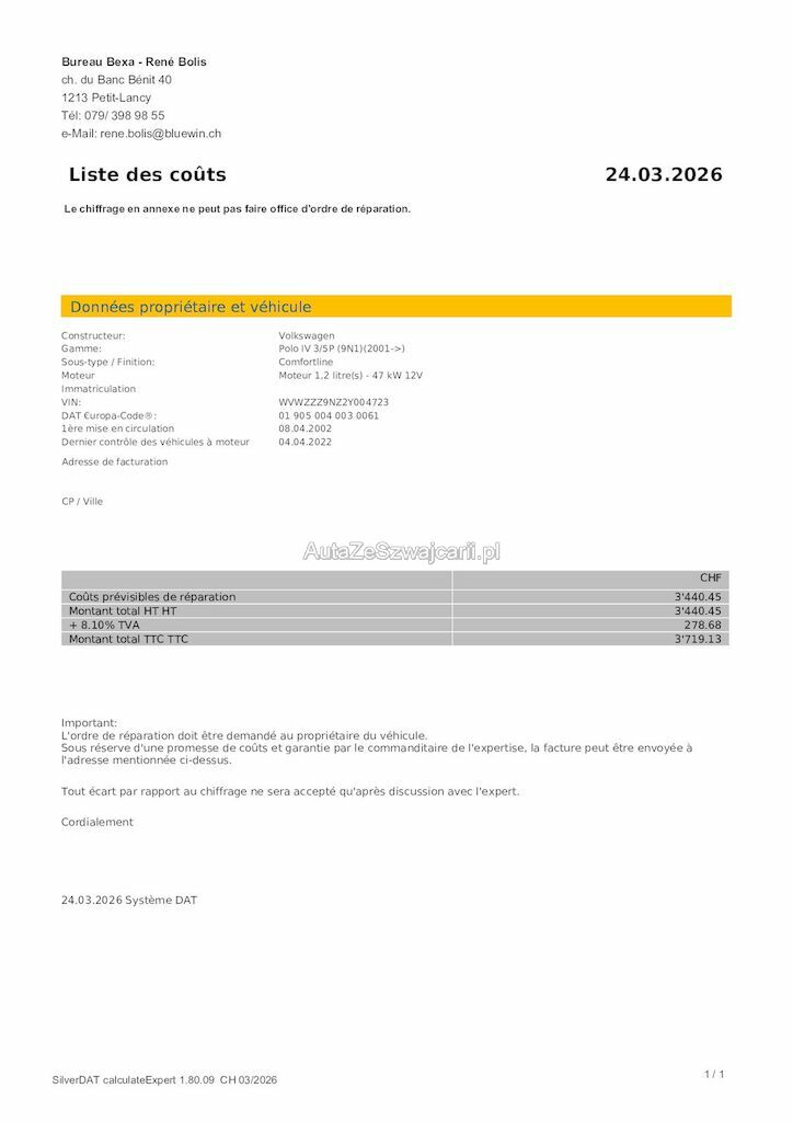 | Reparaturkosten | 3'719.15 CHF |