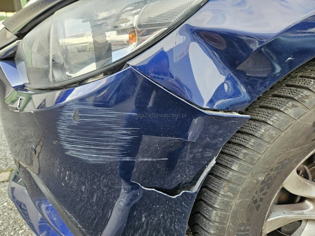 Seiten und Frontschaden links: Stossfänger vorne gebrochen, Kotflügel deformiert, Seitenspiegel gebrochen, Frontscheibe gerissen.