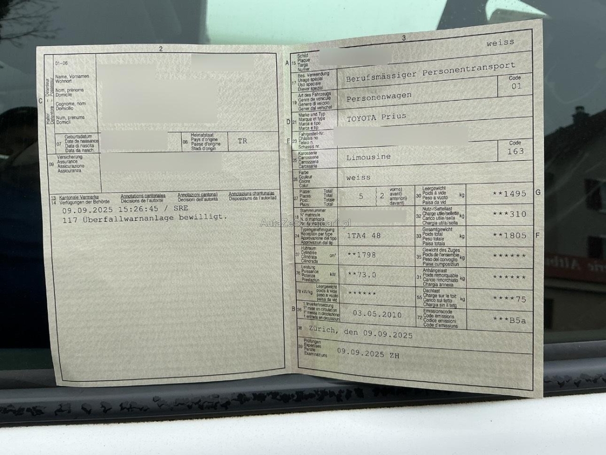 | Fahrzeugausweis | Vorhanden |