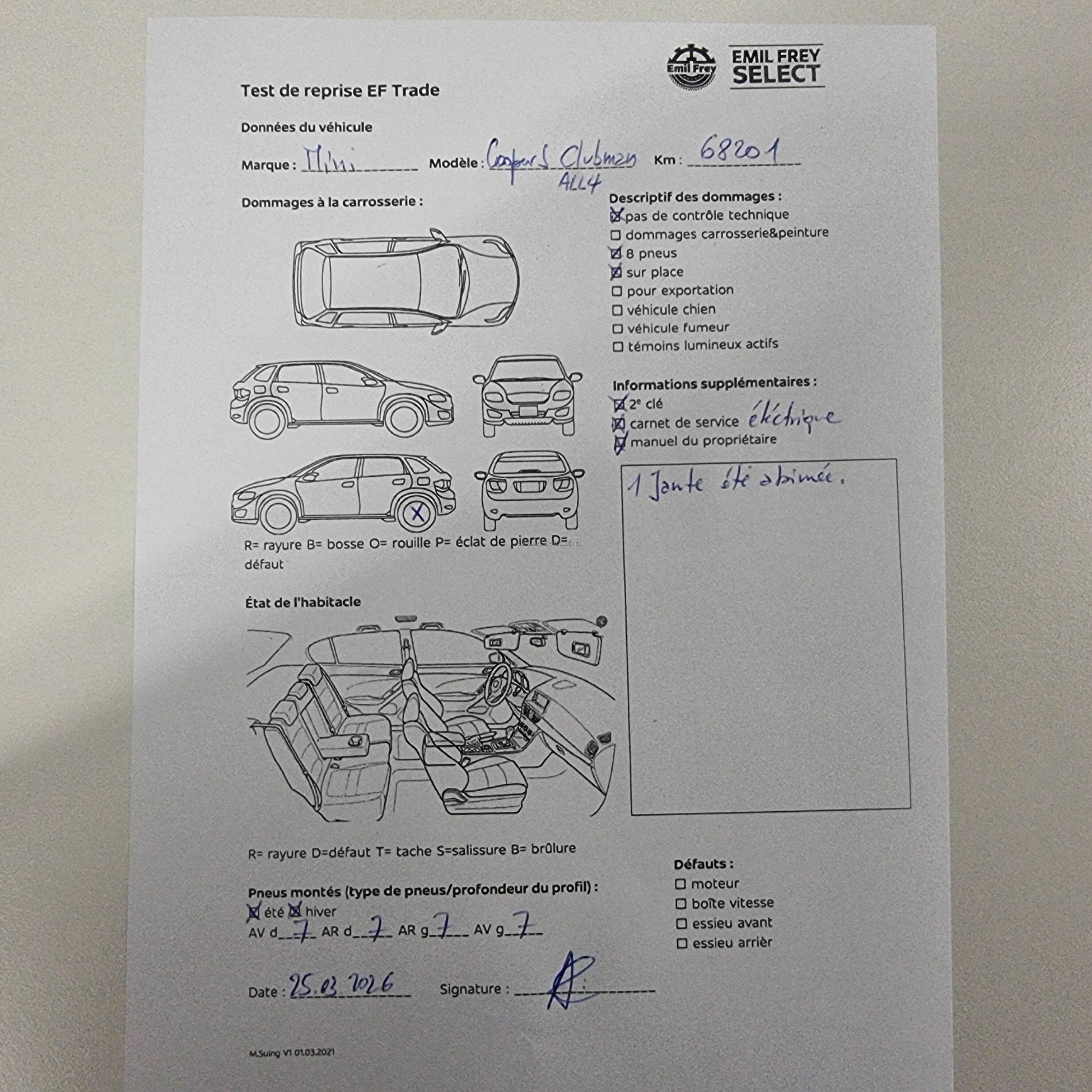 Pas de contrôle technique (essai en atelier) effectué