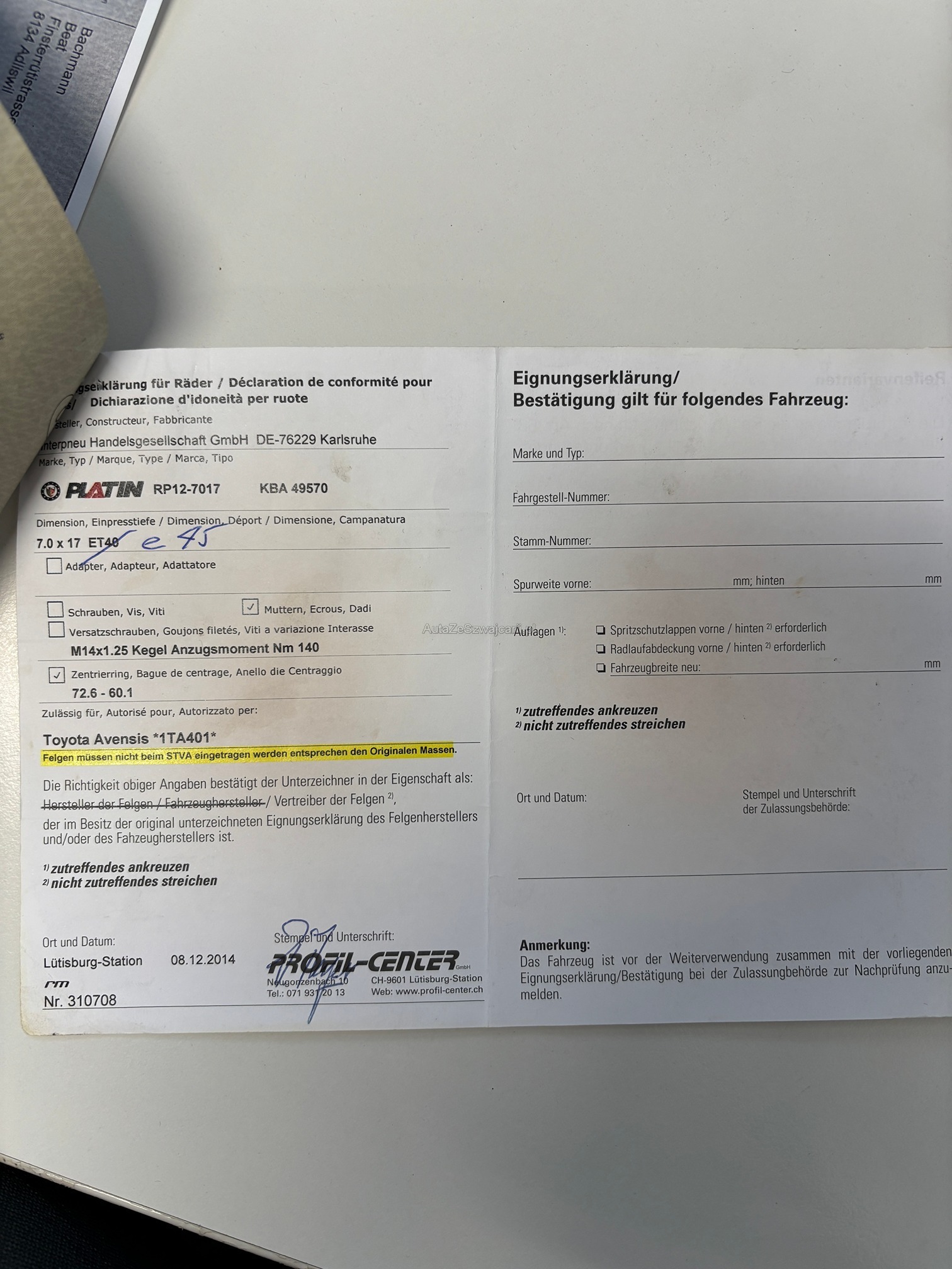 | Komplett mit Sommer- und Winterreifen | Yes |