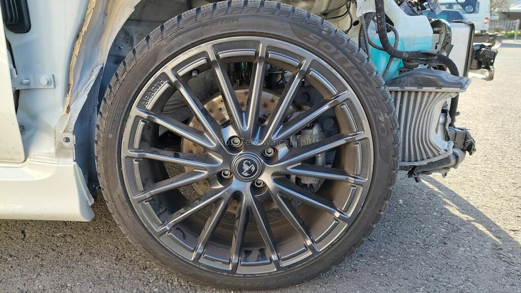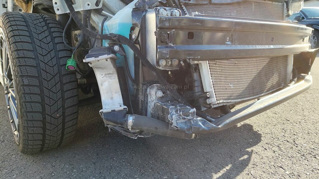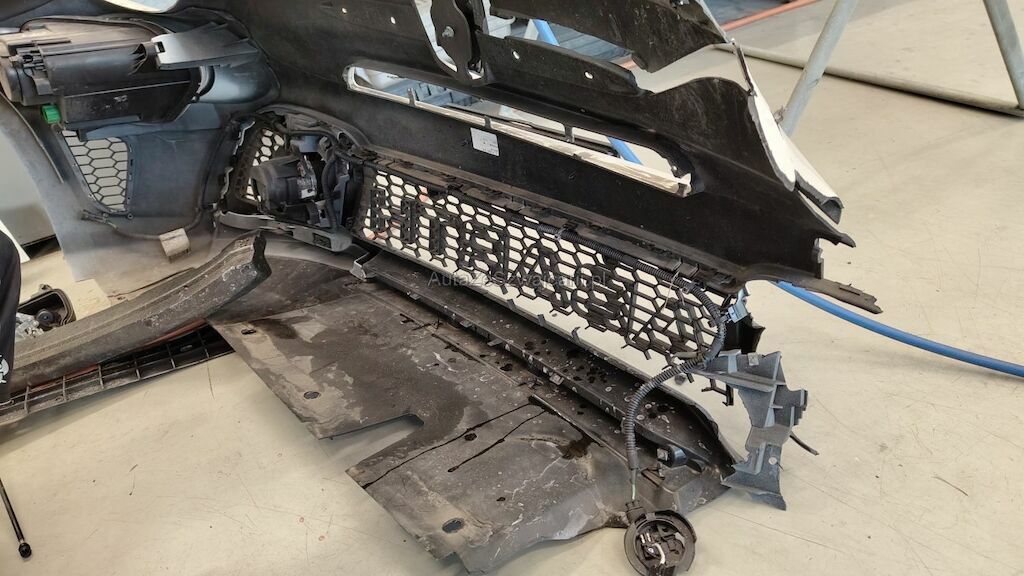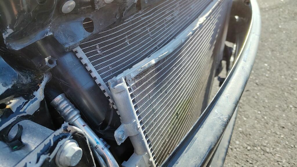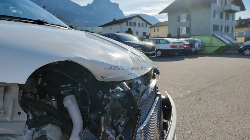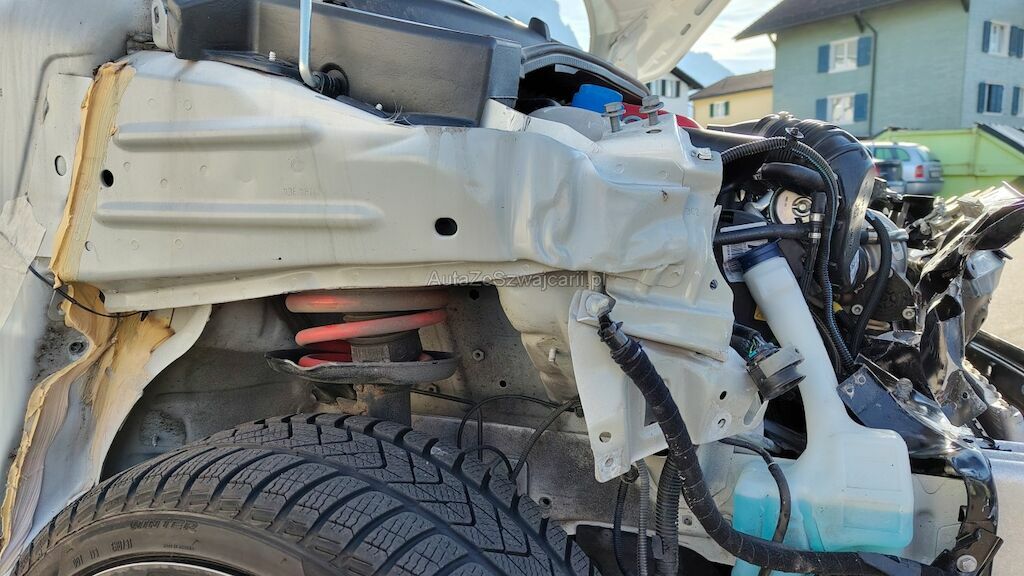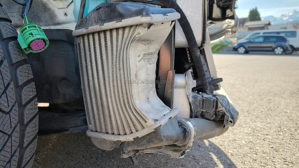 Frontschaden rechts: Stossstange, Motorhaube, Kotflügel, Scheinwerfer, Schlossträger, alle Kühler, Turboladergehäuse, diverse Kabel und Stecker, Stehblech, Felge beschädigt.