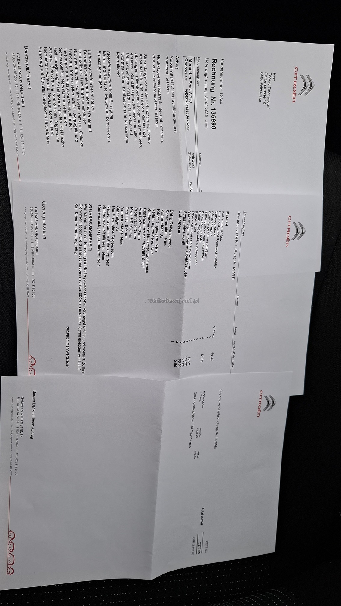 | Kommentar | Fahrzeugverkauf erfolgt ab Platz ohne Garantie und Nachwährschaft. Keine Werkstattprüfung erfolgt. Fahrzeug fährt einwandfrei, Serviceanzeige leuchtet wegen Fälligkeit. Hat div. Kleinere Karosserieschäden Fotos nicht abschliessend, leichter Hagelschaden vorhanden, kaum sichtbar aber erwähnt! 8fach bereift. Abholung innert 5Tagen nach Ablauf der Auktion erwünscht. |