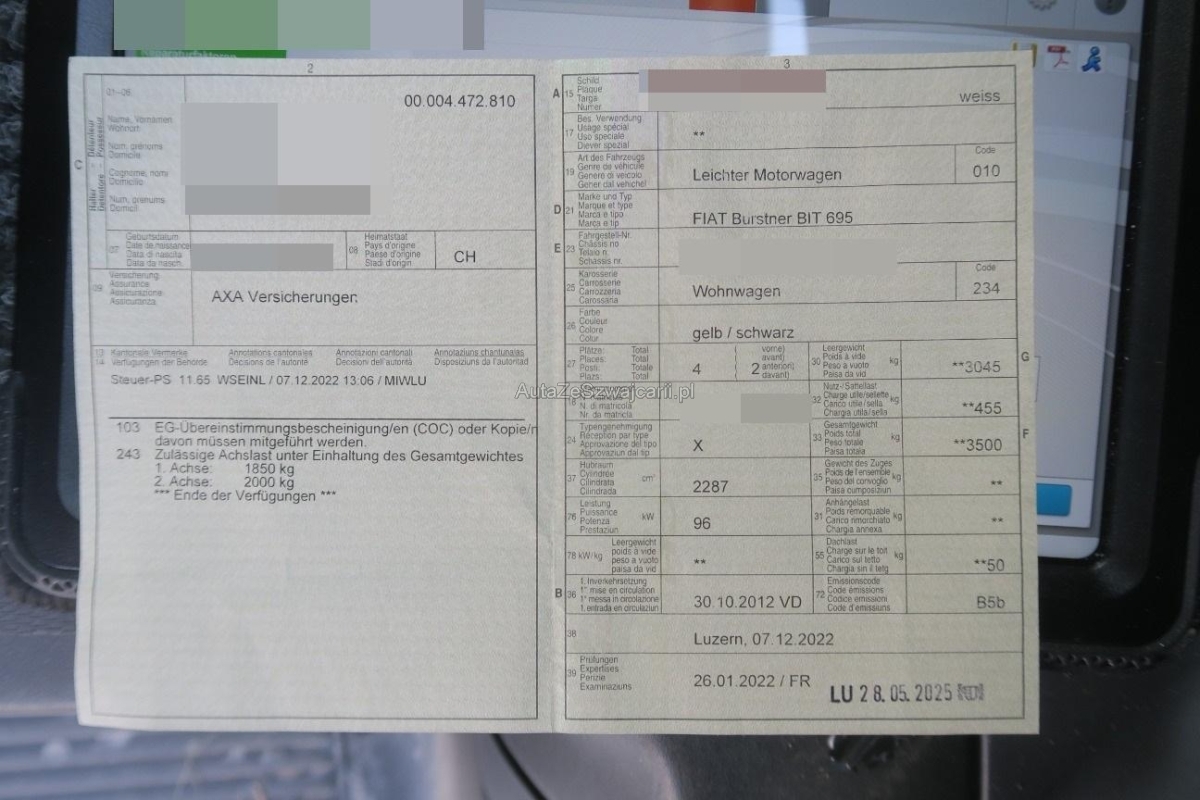 | Fahrzeugausweis | Vorhanden |