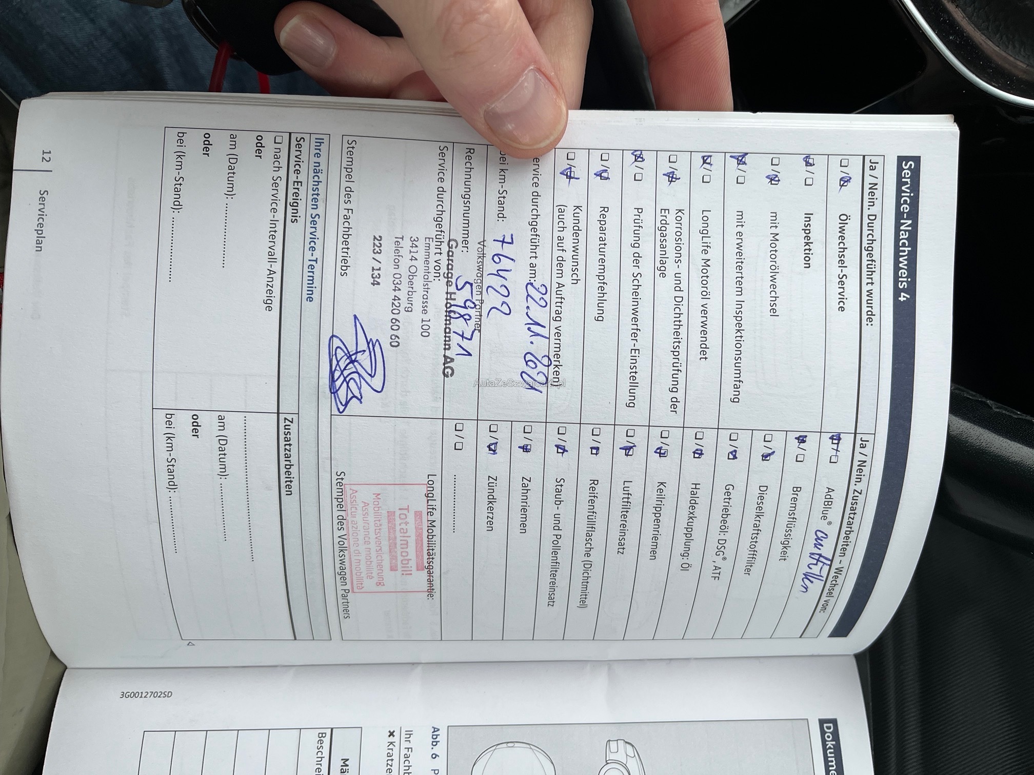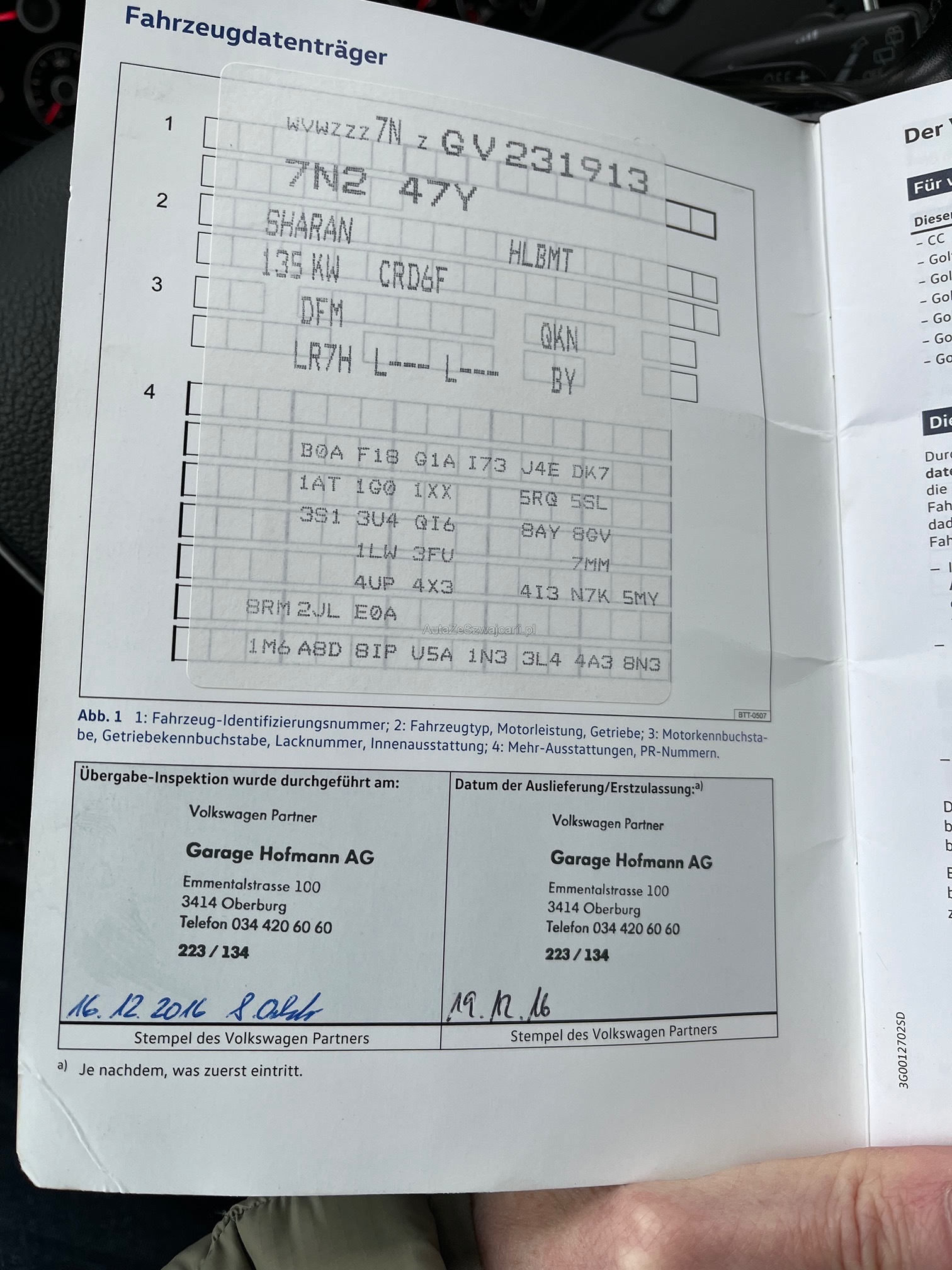 | Kommentar | Fahrzeug hat Mechatronic Schaden. Wird mit Sommer und Winterräder übergeben. Immer bei VW Garage. 7-Sitzer AHK Pano etc. Highline Ausführung. Am Fahrzeug wurde kein Werkstatttest gemacht (Für sichtbare oder nicht sichtbare Mängel wird nicht gehaftet). Wir testen & kontrollieren nicht alle Funktionen des Fahrzeugs. Das Risiko liegt somit vollumfänglich beim Käufer. Nachdem der Höchstbietende den Zuschlag erhalten hat, gibt es keine Nachverhandlung, auch wenn nicht deklarierte Mängel zum Vorschein kommen sollten. Ab Platz ohne Garantie, Wandelung und Minderung werden wegbedungen. |