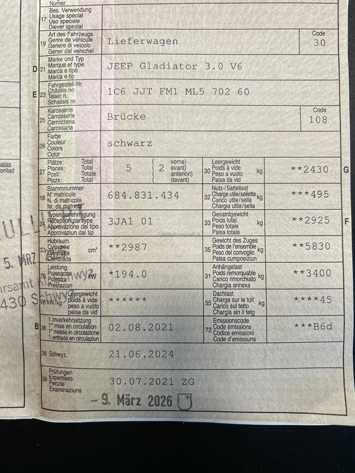 | Kommentar | Der Jeep wurde höher gelegt + Offroad Rad montiert (eingetragen) AHK mit 3'400 KG Anhängelast Frisch ab MFK am 09.03.2026 bestanden Frisch ab Service 12.03.2026 Neue Bremsen vorne komplett Neue Batterie |