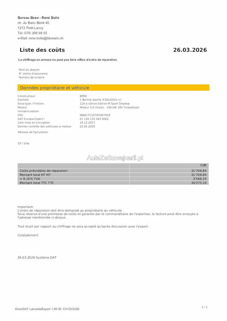 | Reparaturkosten | 34'275.00 CHF |