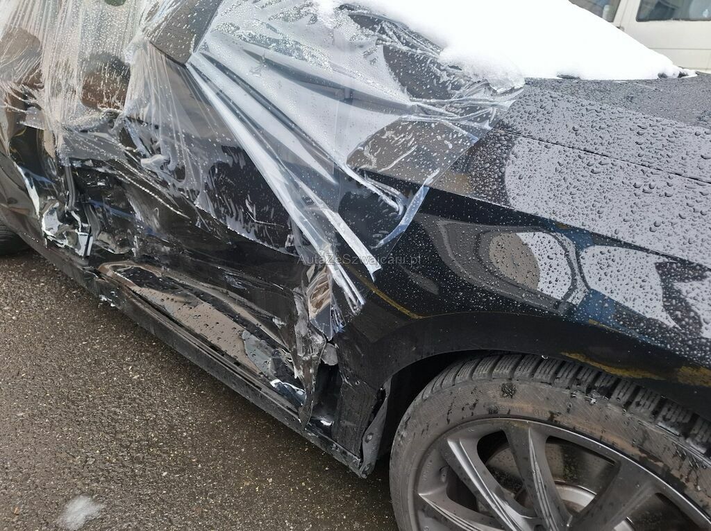 Türe vorne und hinten, Schweller, A-Säule, B-Säule und Seitenwand eingedrückt. Gurtraffe, Seitenairbag rechts und Kopfairbag rechts ausgelöst.