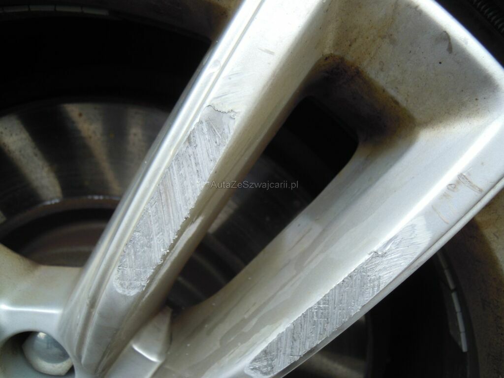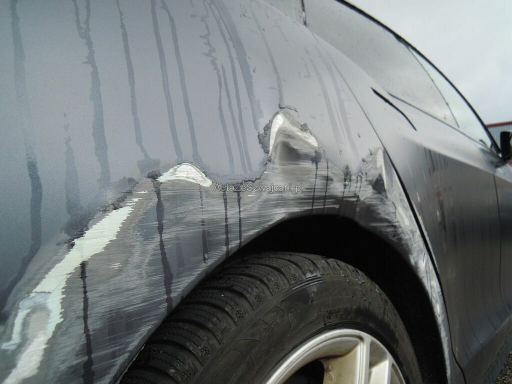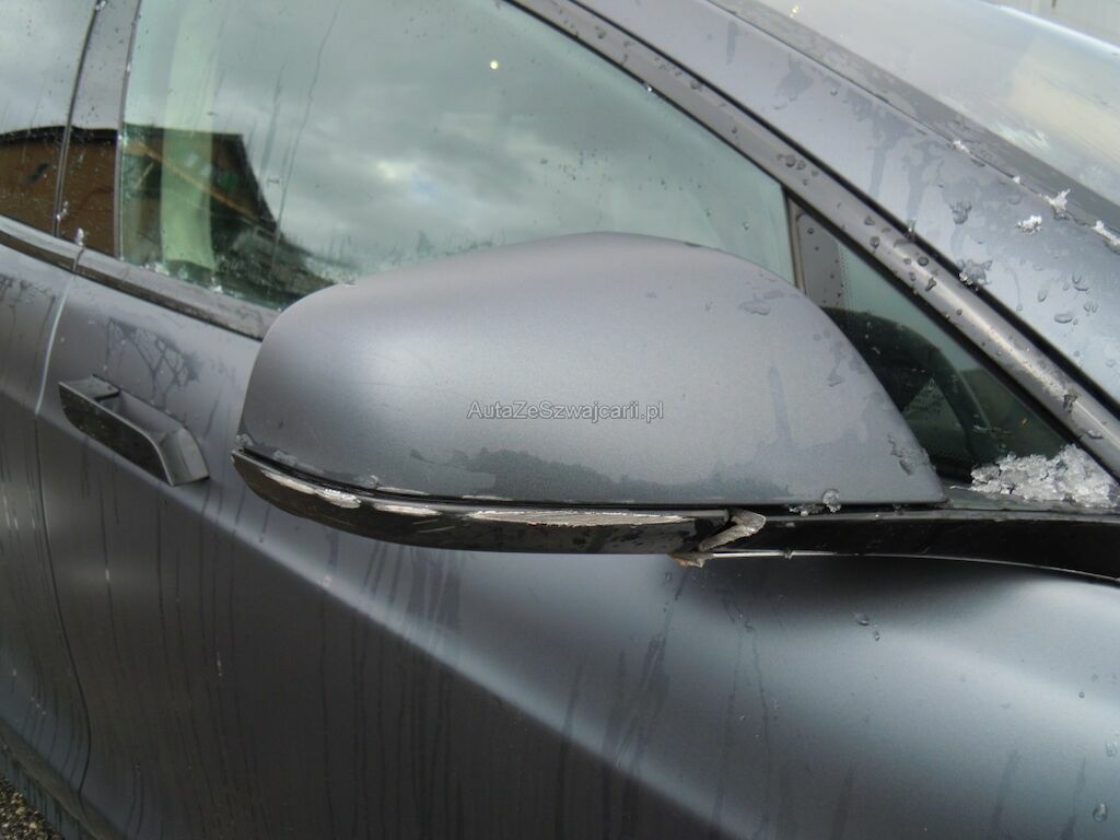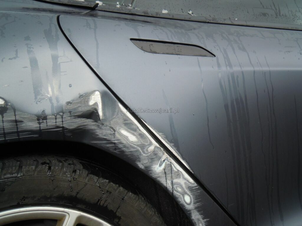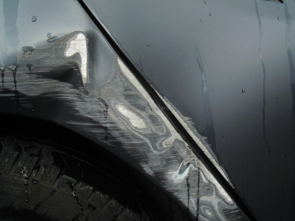 Dommage zone latérale droite: Pare-chocs avant, spoiler inférieur, pare-chocs arrière grffés, rétroviseur griffé et usé (trou), aile avant déformée, gonflée et griffée, support de phare cassé, porte arrière griffée, aile arrière fortement déformée, griffée et usée (trou), jantes griffées, jeu dans la crémaillère de direction (env. 2 cm ressenti dans le volant).