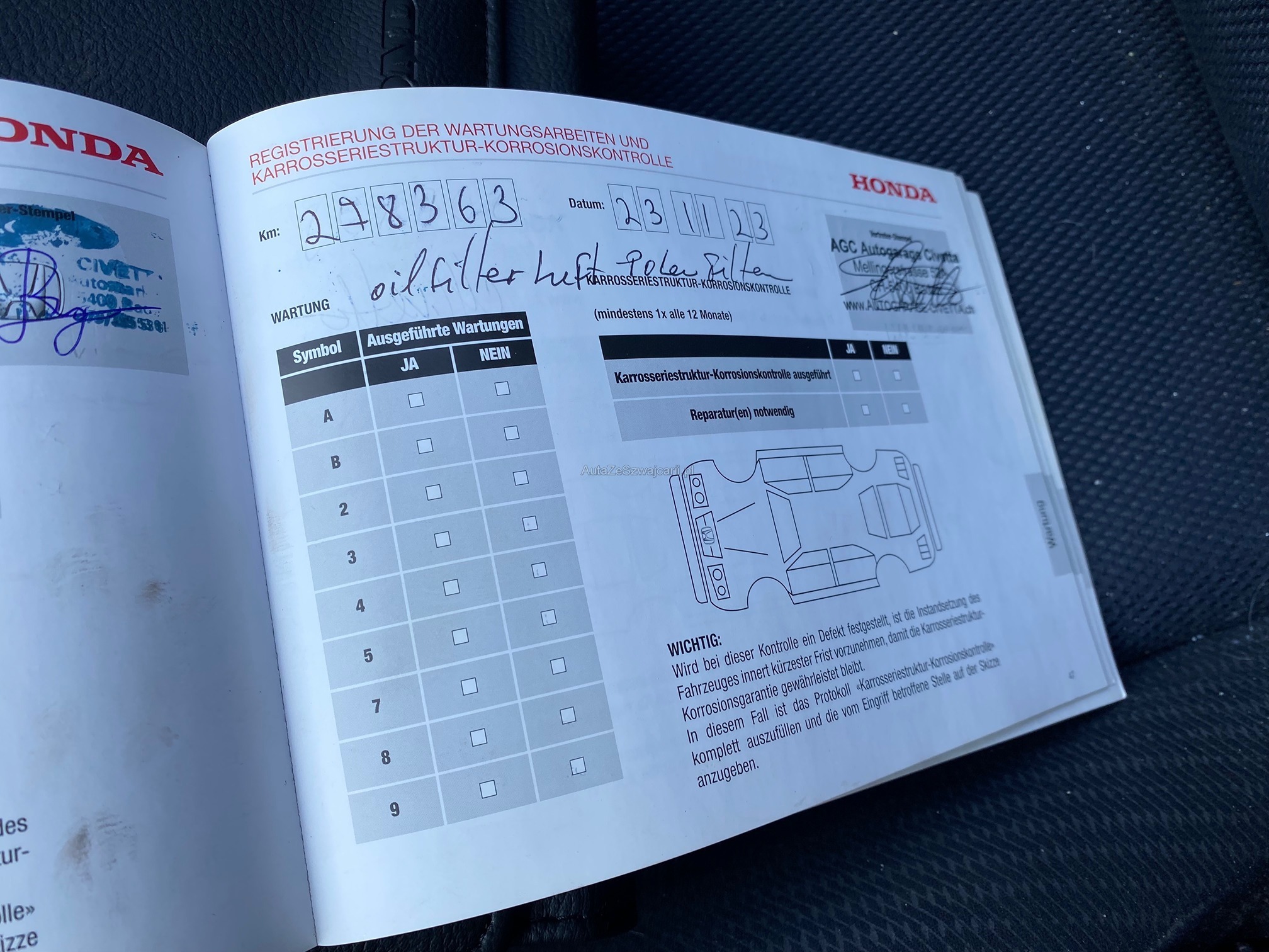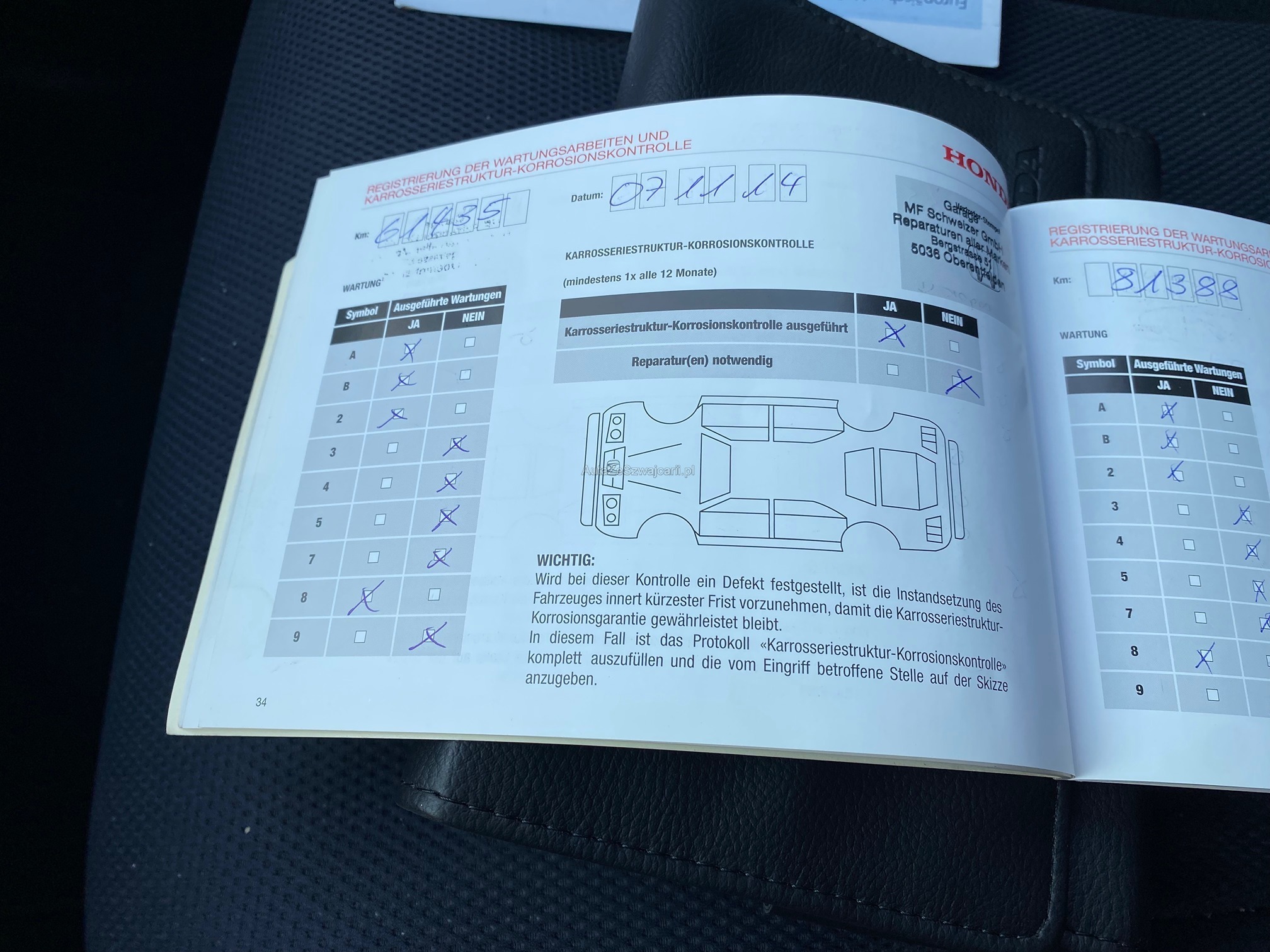 | Kommentar | Stark verschmutzt. Div. Stellen haben Kratzer und Beulen! Wurde technisch und mechanisch nicht geprüft. Kein Eintauschtest, keine Prüfung auf Mängel oder Probefahrt durchgeführt! Mängel möglich. Käuferrisiko! Gem. Vorbesitzer, läuft das Auto einwandfrei. Keine weitere technische oder mechanische Prüfung. Zustand, Fahrzeugbereifung und Ausstattung gemäss Fotos. Fahrzeugkauf auf eigenes Risiko, ab Platz ohne Garantie und Nachwährschaft. Die Gewährleistung für Sachmängel wird wegbedungen. Wandelung und Minderung sind ausgeschlossen! |