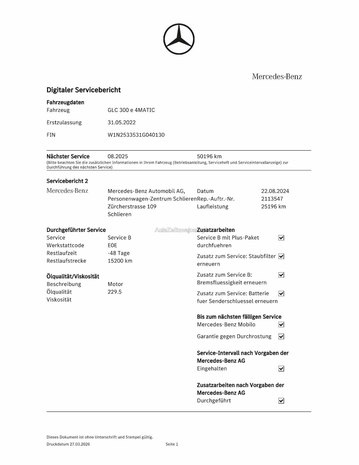 - Serviceberichte von Mercedes Benz : Foto