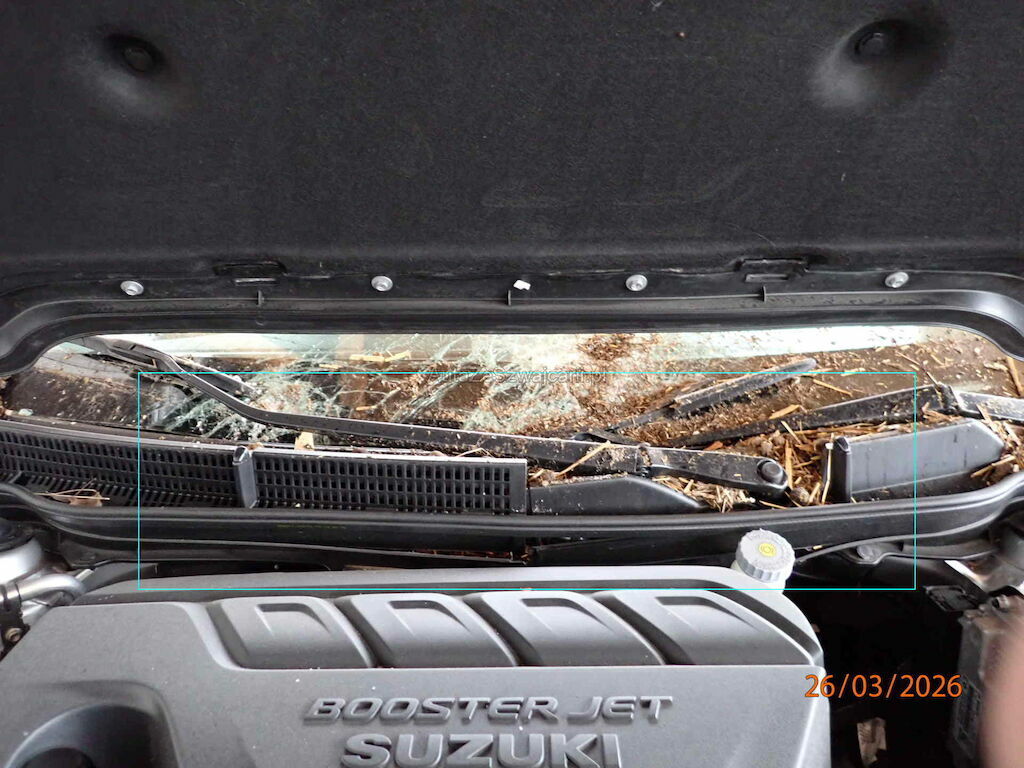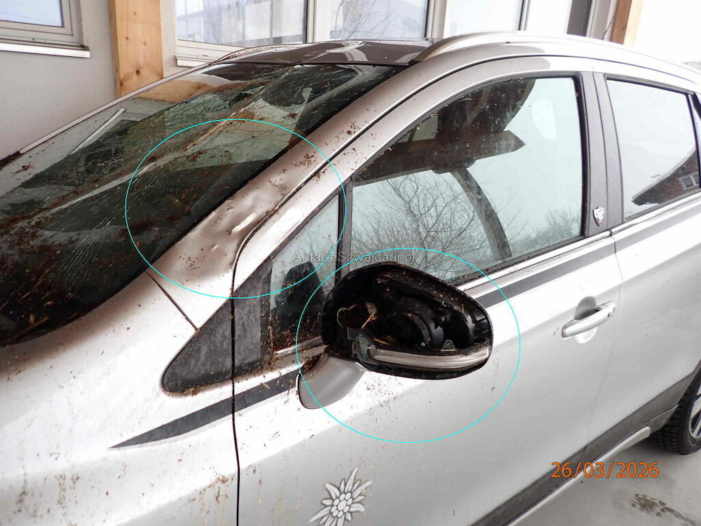 Haube, Scheinwerfer rechts, Kühlergrill, Stosstange vorne, Türe VL , Frontscheibe, Armaturenbrett, Dach und Strebe, Wischergestänge, Scheibenwischer,