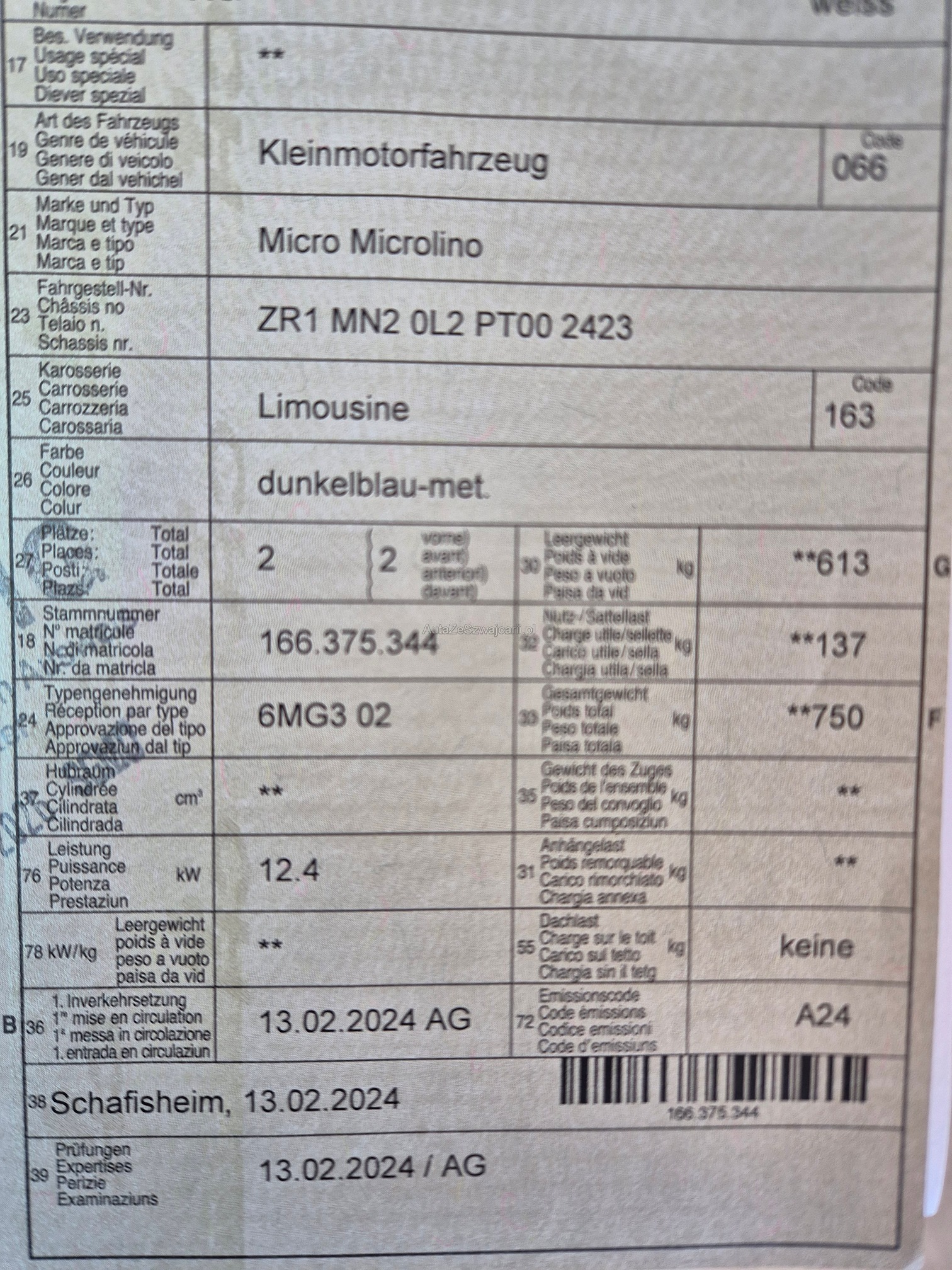 | Kommentar | Am Fahrzeug wurde kein Werkstatttest gemacht (Für sichtbare oder nicht sichtbare Mängel wird nicht gehaftet). Wir testen & kontrollieren nicht alle Funktionen vom Fahrzeug. Das Risiko liegt somit vollumfänglich beim Käufer. Nachdem der Höchstbietende den Zuschlag erhalten hat, gibt es keine Nachverhandlung, auch wenn nicht deklarierte Mängel zum Vorschein kommen sollten. Ab Platz ohne Garantie, Wandelung und Minderung werden wegbedungen. Abholung nach Zuschlag innert 5 Tagen. Das Fahrzeug kann vorgängig am Steinackerweg 12 in 4322 Mumpf besichtigt werden. |