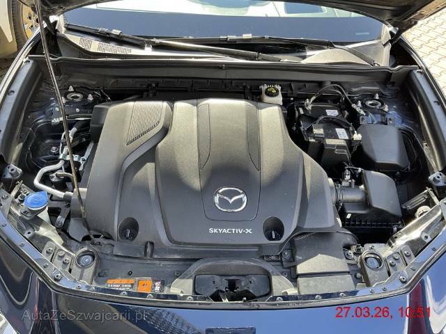 | Serienausstattung | 3-Punkt-Sicherheitsgurte auf allen Plätzen, Airbag: Airbag Fahrer und Beifahrer, Airbag: Fahrer-Knie-Airbag, Airbag: Seitenairbag für Fahrer und Beifahrer, Airbag: Window-Kopfairbags, Alarmanlage, Assist: 360° Kamera inklusive Rückfahrkamera, Assist: Adaptive Geschwindigkeitsautomatik MRCC (Mazda Radar Cruise Control), Assist: Antiblockiersystem (ABS), Assist: Aufmerksamkeitswarner DAA (Driver Attention Alert) mit Kamera, Assist: City-Notbremsassistent SCBS mit Fussgänger- und Fahrraderkennung, Assist: Dynamische Stabilitätskontrolle DSC und Traktionskontrolle TCS, Assist: Einparkhilfe hinten, Assist: Einparkhilfe vorne, Assist: Elektronische Parkbremse mit Auto-Hold-Funktion und Berganfahrhilfe, Assist: Front-Querverkehrswarner FCTA (Front Cross Traffic Alert), Assist: Geschwindigkeitsbegrenzer, Assist: Pre-Crash Safety mit aktivem Bremseingriff SBS (Smart Brake Support), Assist: Querverkehrsassistent hinten, Assist: Rückfahr-Notbremsassistent, Assist: Rückfahr-Querverkehrs-Notbremsassistent RCTB (Rear Cross Traffic Brake), Assist: Spurhalteassistent Lane Assist, Assist: Spurwechselassistent mit Totwinkelwarner BSM (Blind Spot Monitoring), Assist: Stauassistent CTS (Cruising &, Assist: Verkehrszeichenerkennung TSR, (Traffic Sign Recognition), erfordert Navigationssystem, Aussenspiegel elektrisch verstellbar, beheizbar und automatisch einklappbar, Aussenspiegel in Wagenfarbe, Benzinmotor Skyactiv-X mit Kompressionszündung SPCCI (Spark Plug Controlled Compression Ignition), Blenden im Seitenfensterbereich in Brilliant Black, Bordcomputer, Dachheckspoiler in Brilliant Black, Drehzahlmesser, Dunkel getönte Scheiben hinten, E-Call, Elektrische Fensterheber vorn und hinten mit Automatikfunktion, Elektrische Heckklappe, Fahrwerk: G-Vectoring Control, die Fahrdynamikregelung von Mazda, Garantie: Mazda Garantie 3 Jahre oder 100'000 km (ab 1. Inv.), Getriebe: 6-Gang-Automat, Heckscheiben-Wisch-/Waschanlage, Heckscheibenheizung, Innen- und Aussenspiegel automatisch abblendbar, Interieur mit Similileder in Kontrastfarbe Dark Blue, Katalysator geregelt, Keyless Entry, Klima: 2-Zonen-Klimaautomatik mit Ventilation hinten, Kofferraumorganisator Smart Cargo System (SCS), Kühlergrill und Blenden im Seitenfensterbereich in Brilliant Black, LED Innenraumbeleuchtung, Lederlenkrad und -schaltknauf, Lenkrad: Lenkrad beheizbar, Lenkrad: Multifunktionslenkrad, Licht: Adaptives Matrix-LED-Lichtsystem ALH (Adaptive LED Headlight) inkl. Fernlichtautomatik, Licht: Coming-home-Funktion, Licht: Drittes Bremslicht, Licht: LED Heckleuchten, Licht: LED-Lichtsignatur vorn und hinten, Licht: LED-Tagfahrlicht integriert in Scheinwerfer, Licht: Lichtautomatik, Licht: Nebelschlussleuchte, Licht: Scheinwerfer mit Coming-/Leaving-Home-Funktion, Mazda M Hybrid, Mild-Hybridsystem (M-HEV) mit Bremsenergie-Rückgewinnung, Media: 12 Lautsprecher, Media: Apple CarPlay und Android Auto, Media: Bluetooth für Smartphones und Audiogeräte, Media: Bose Premium Surround Sound-System, Media: Digitaler Radioempfang (DAB/DAB+), Media: Head-up-Display mit Projektion auf die Windschutzscheibe, Media: Instrumentenanzeige mit 7'-TFT-Multidisplay, Media: MZD Connect mit 8,8'-TFT-Farbdisplay und Multi Commander HMI auf der Mittelkonsole, Media: Mazda Connected Services, Media: MyMazda App, Media: Navigationssystem, Media: USB-Anschluss, Media: Zweiter USB-Anschluss, Polster: Stoff-Ausstattung, Rahmloser Innenrückspiegel, Räder: Leichtmetallfelgen 18", Räder: Reifendruckkontrollsystem, Räder: Reifenreparatur-Set (Tire Fit), Scheibenwischer mit Regensensor und integrierter Waschdüse mit Enteiser-Funktion, Servolenkung, Sitze: Beifahrersitz höhenverstellbar, Sitze: Fahrersitz in Höhe und Sitzkissen in Neigung verstellbar, Sitze: ISOFIX Kindersitzvorrichtung, Sitze: Kopfstützen hinten, Sitze: Kopfstützen vorne höhenverstellbar, Sitze: Rücksitzlehnen getrennt abklappbar 60:40, Sitze: Vordersitze heizbar, Start-/Stop-Knopf, Steckdose 12V, Wegfahrsperre elektronisch, Zentralverriegelung mit Fernbedienung, i-stop, das intelligente Stopp-Start-System von Mazda |