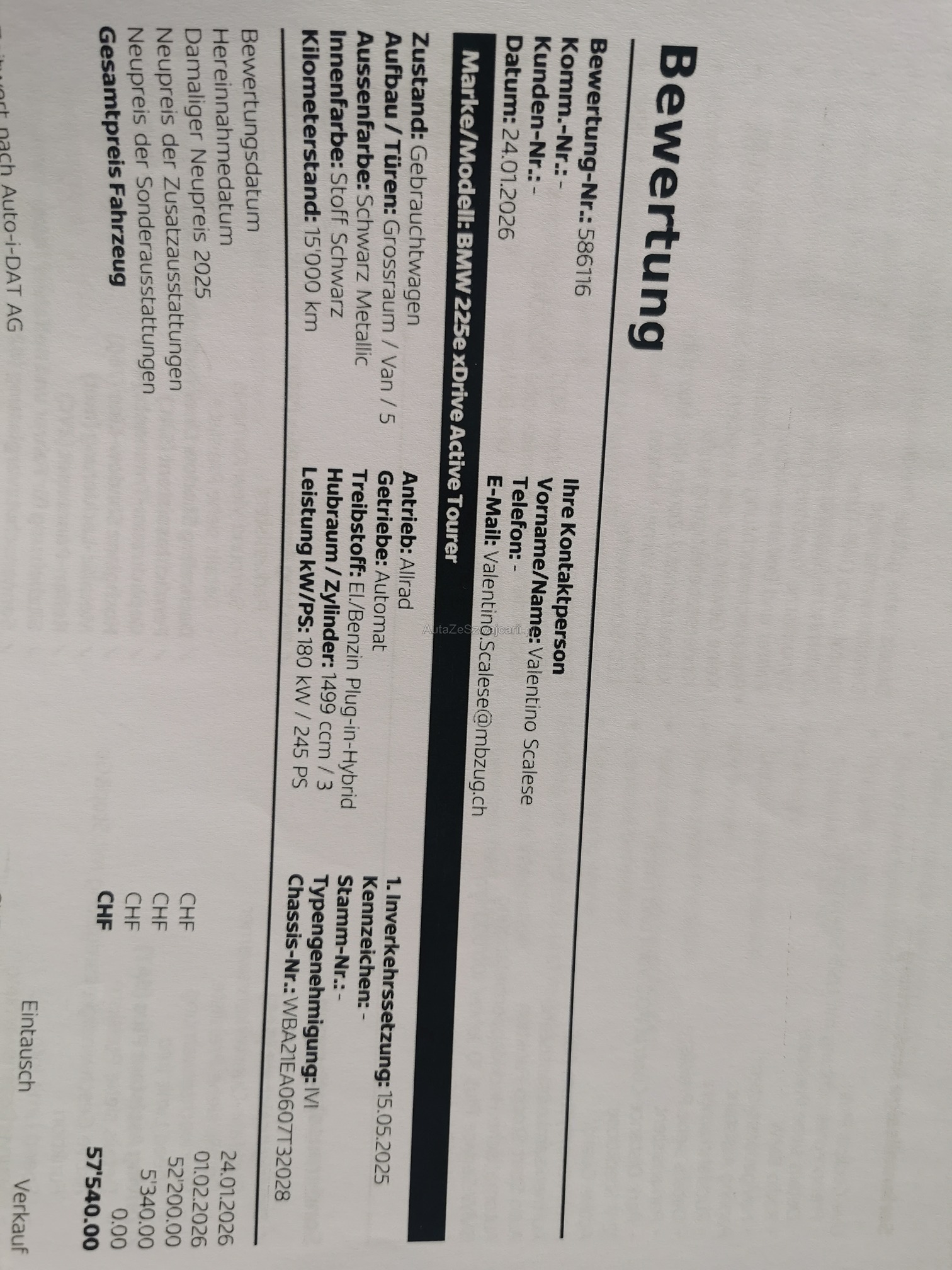 | Kommentar | Preisvorstellung CHF 33'500.- |