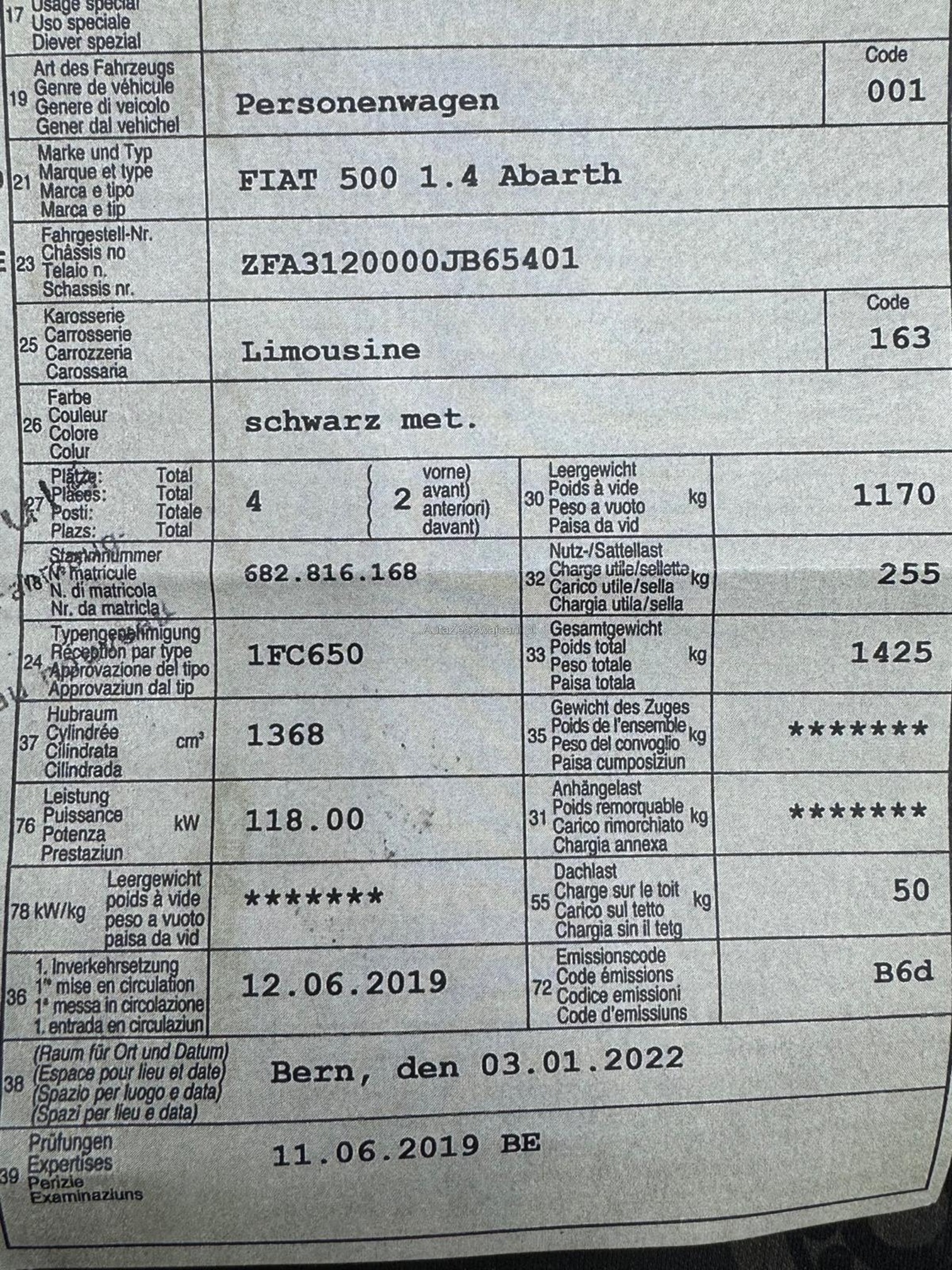 | VIN | ZFAXXX |