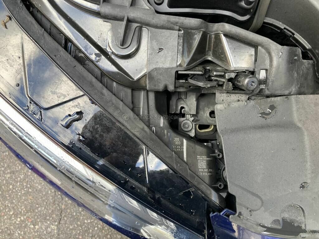 Capot moteur, enveloppe de pare-chocs, spoiler inférieur, renfort, phares avant, calandre, radar, capteurs de parc, aile, cuvelage d'aile, garniture, toute la mécanique avant gauche, jante alu , pneu, direction endommagés/pliés/faussés, airbags de têtes , airbags de siège avant gauche déployés, 4 ceintures de sécurités déployés, housse de siège en cuir endommagée ( voir photos )