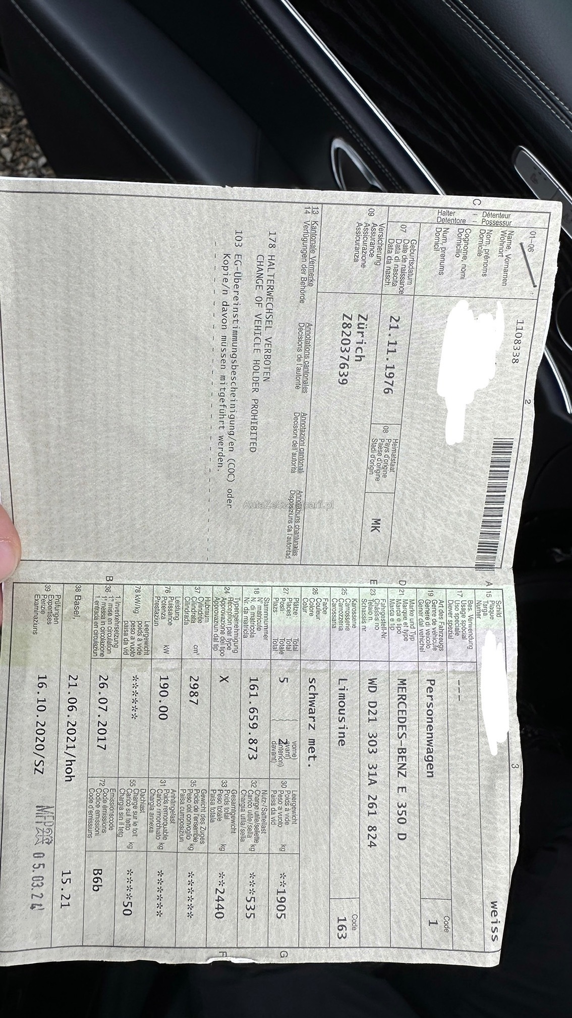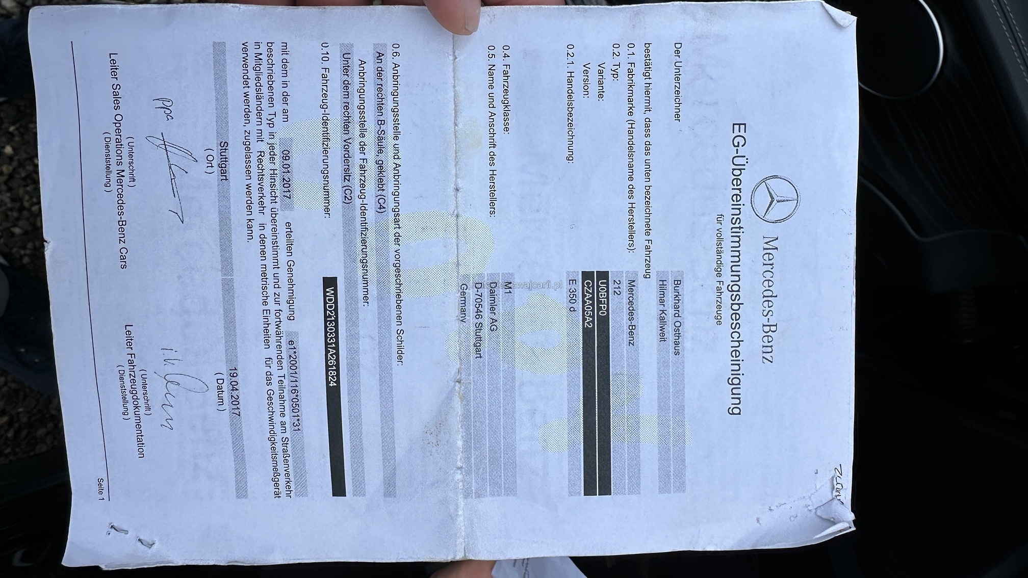 | VIN | WD XXX |