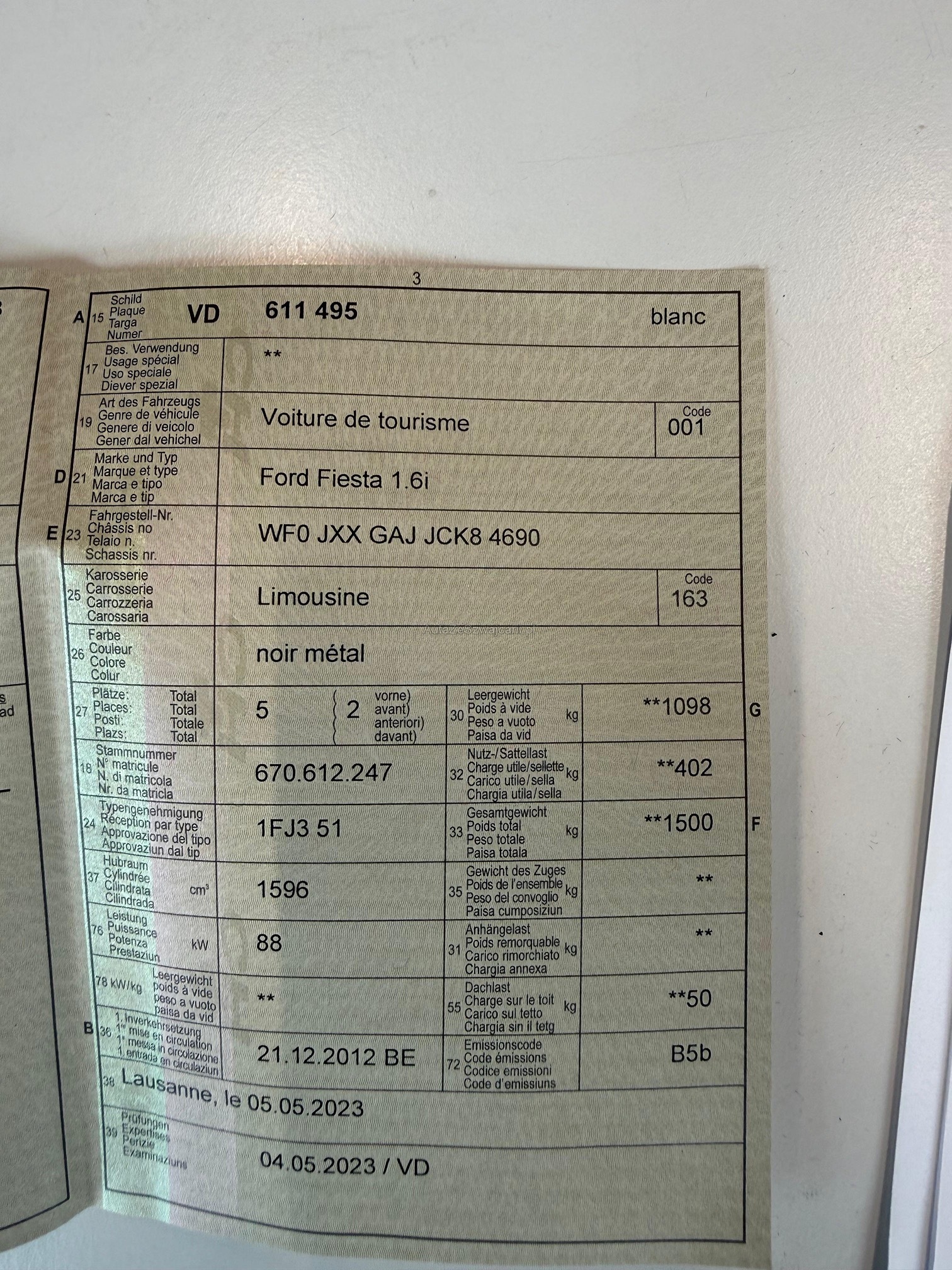 | VIN | WF0XXX |