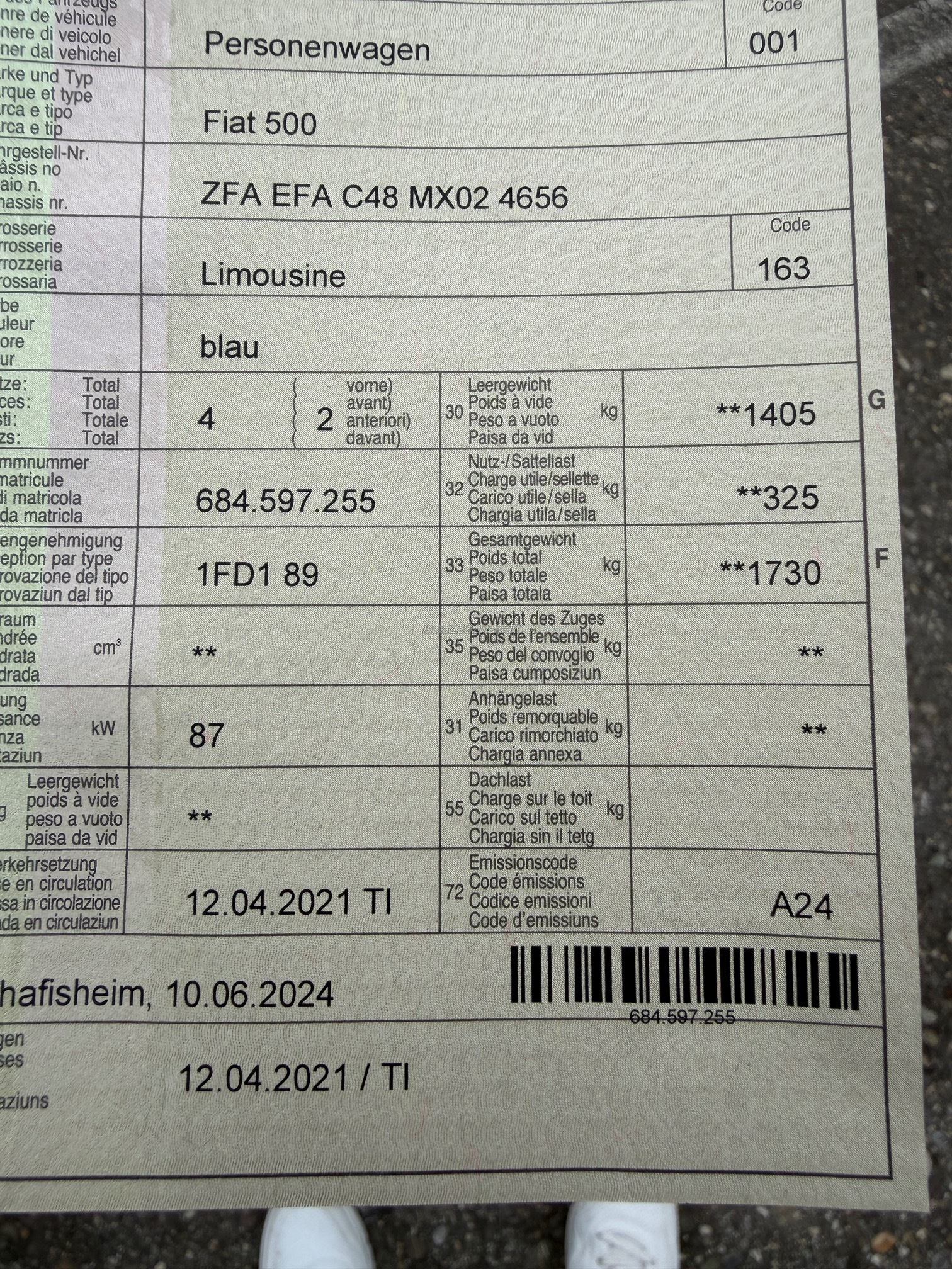 | Kommentar | Sehr gepflegtes Fahrzeug, Bild Nummer 2 und 3 mit den Sommerräder. Dise wurden nicht Live gesehen, haben jedoch gemäss Kunde keine Beschädigungen. Winterreifen erst ca. 500km alt. Batterie hat noch die originale Garantie von Fiat. Am Fahrzeug sind keine Mängel bekannt, Bilder so gut wie möglich gemacht. Kundenvorstellung liegt bei mind. 13'000.-, darunter wird es keinen Zuschlag geben. Kein Werkstatttest durchgeführt. Am Fahrzeug wurde kein Werkstatttest gemacht (Für sichtbare oder nicht sichtbare Mängel wird nicht gehaftet). Wir testen & kontrollieren nicht alle Funktionen vom Fahrzeug. Das Risiko liegt somit vollumfänglich beim Käufer. Um Missverständnisse zu vermeiden kann das Fahrzeug auf Voranmeldung besichtigt & getestet werden, sollten Sie davon bewusst kein Gebrauch machen dann liegt die Verantwortung bei Ihnen. Nachdem der Höchstbietende den Zuschlag erhalten hat, gibt es keine Nachverhandlung, auch wenn nicht deklarierte Mängel zum Vorschein kommen sollten. Ab Platz ohne Garantie, Wandelung und Minderung werden wegbedungen. |