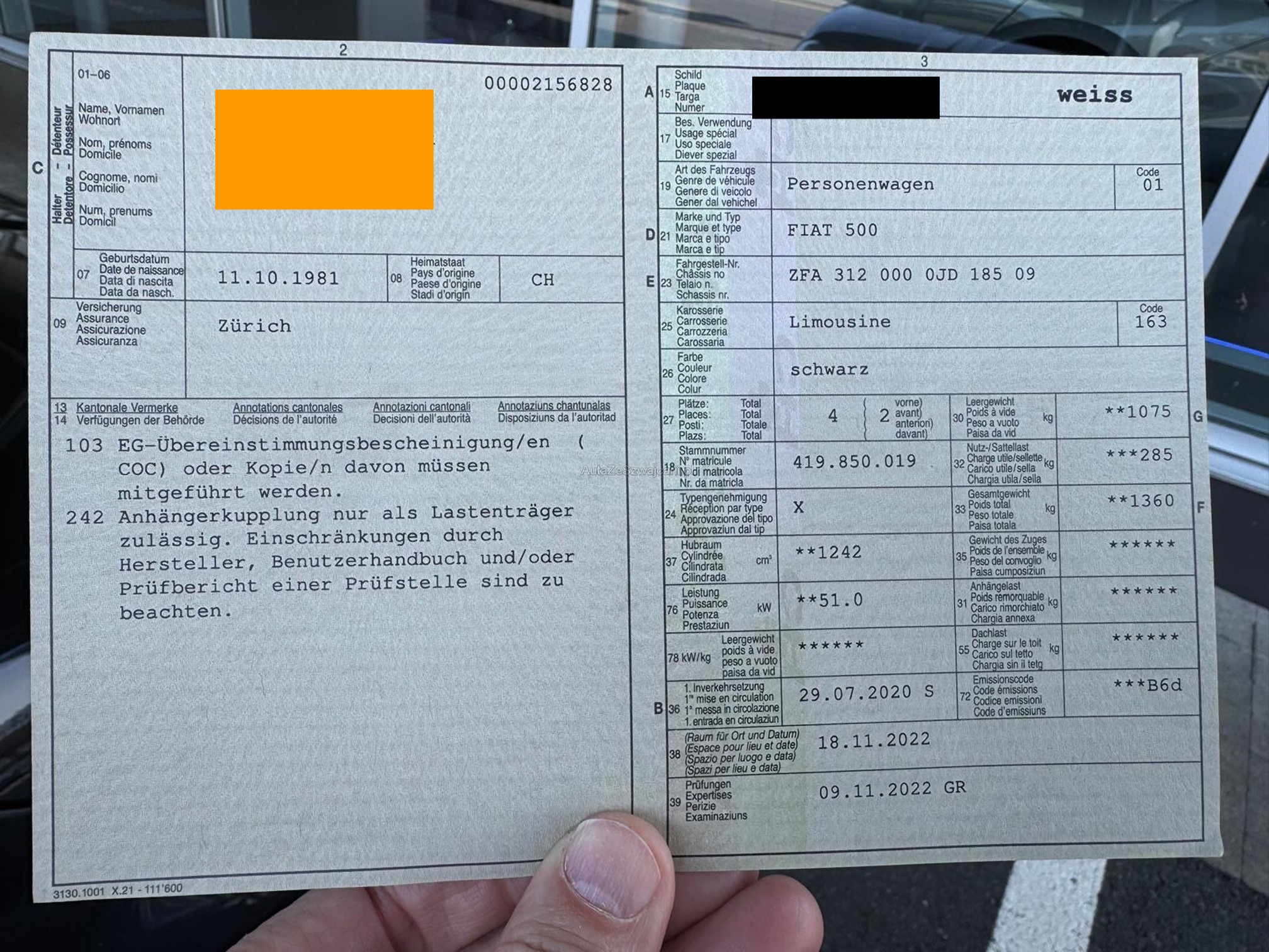 | Kommentar | Das Fahrzeug hat keine bekannten Mängel. Auch die Karosserie ist in sehr gutem Zustand. Wir haben keinen Werkstatttest durchgeführt. Das Auto muss bei der Auto Inderbitzin AG in Oberarth abgeholt werden. |