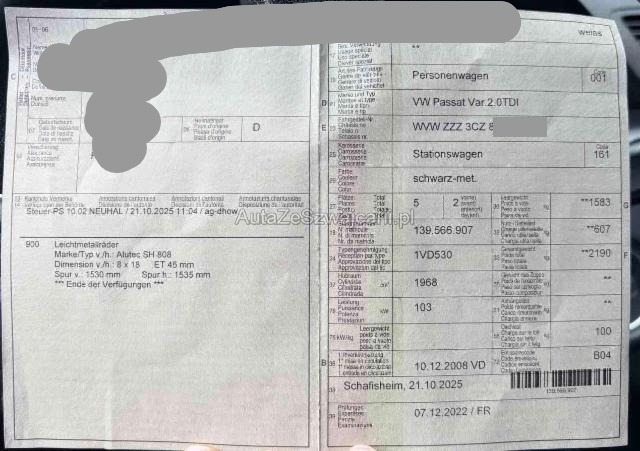 | Condition_and_Equipment | Demontage Persönliche Gegenstände oder Ladegut im Fahrzeug werden entfernt. Zustand Fahrzeug muss transportiert werden (Höhe und Breite beachten). Fahrzeug ist NICHT fahrbar. Fahrzeug ist rollbar. Fahrzeug ist teilweise ausgebrannt. Motor startet nicht, Ursache unbekannt. Bereifung Fahrzeug wird mit Winterräder abgegeben. Sonstiges Fahrzeugdokumente vorhanden. Schlüssel Nur ein Schlüssel vorhanden. Weitere wichtige Hinweise Die (vom Fahrzeugsachverständigen) berechneten/geschätzten Reparaturkosten beziehen sich auf das aktuell begutachtete Ereignis. Allfällige zusätzliche, nicht versicherte Schäden/Vorschäden, sind in den Reparaturkosten nicht enthalten. Die deklarierten Ausstattungsmerkmale können von der effektiven Ausstattung abweichen. Es wurden keine technischen Kontrollen durchgeführt. Sie bieten auf ein beschädigtes Fahrzeug ohne technische Prüfung. Dieses "Angebot" ist nicht vergleichbar mit anderen Occasionsverkaufsplattformen. Allfällige Garantieleistungen seitens Hersteller/Importeur können mit dem Schadenereignis hinfällig sein. Der effektive km Stand kann von dem abgelesenen/angegebenen km Stand abweichen. Weitere Details des Schadens sind auf den folgenden Fotos zu entnehmen. Persönliche Gegenstände können durch den Halter entfernt werden. --- Motor Motorschaden. Risiko Motor. Risiko Getriebe. Risiko Differenzial. Motoranbauteile beschädigt. Turbolader beschädigt. Motorstörung: Warnleuchte aktiv Öl-/Kraftstoffaustritt vorhanden Innenraum Dachhimmel gerissen. Innenraum ungepflegt. Sitz vorne links defekt. Sitzpolster haben Brandlöcher. Starke Verschmutzung im Innenraum. Unangenehme Geruchsentwicklung im Innenraum (z.B. Treibstoff, Lebensmittel, Rauch, etc.) Sonstige Schäden Div.Carrosserie Teile sind leicht beschädigt. Div. Roststellen am Fahrzeug. Lackierung matt (stumpf, beschädigt). Weitere Beschädigungen Seitenwand links schlecht repariert. Motorschaden mit anschliessendem Teilbrand bei Turbolader hinten. Fahrzeug startet nicht (mutmasslich Anlasser dreht frei) --- Serienaustattung Wärmeschutzverglasung grün Textilfussmatten vorne + hinten Airbag Fahrer und Beifahrerseite Kopfairbag vorne und hinten Seitenairbag Fahrer und Beifahrerseite Kindersitz-Vorbereitung Isofix Elektronische Wegfahrsperre Lenksäule mit Höhen- und Längseinstellung Nebelscheinwerfer vorne Zentralverriegelung mit Funkfernbedienung Geschwindigkeitsregelanlage GRA Aussenspiegel elektrisch verstellbar und heizbar Elektrische Fensterheber vorne + hinten Klimaanlage Climatronic 2-Zonen Höhenverstellbarer Fahrersitz Komfortsitze vorne Deaktivierung Beifahrerairbag Mittelarmlehne vorne mit Ablagebox Fahrersitz 6-fach elektr. verst./ elektr. Lendenwirbelstütze Dachreling schwarz Lenkrad 4-Speichen ESP inkl. Bremsassistent/ ABS/ ASR/ EDS Beifahrer Sitzlehne umklappbar Aussentemperaturanzeige Multifunktionsanzeige Plus MFA Servolenkung geschwindigkeitsabhängig Höhenverstellbarer Beifahrersitz mit Lendenwirbelstütze Durchladesystem in der Rücksitzbank Auto-Hold-Funktion Chromleisten an den Seitenfenstern Rücksitzbank und -lehne asymmetrisch geteilt umklappbar Dieselpartikelfilter Elektronische Parkbremse Leichtmetallräder 16" Catalunya 215/55 Dekoreinlagen in Chrom matt Tire mobility system Radiosystem RCD 310 plus MP3 Sitzbezüge in Stoff/ Dessin Calino Komfortstartfunktion Press und Drive Mittelarmlehne hinten mit Ablagebox Keine Gewähr auf die Angaben der Serienausstattungen Sonderausstattung Parkdistanz-Kontrolle vorne + hinten Perleffekt-Lackierung Pack Winter 3 Ausstattung Klimaanlage Metallic-Lackierung |