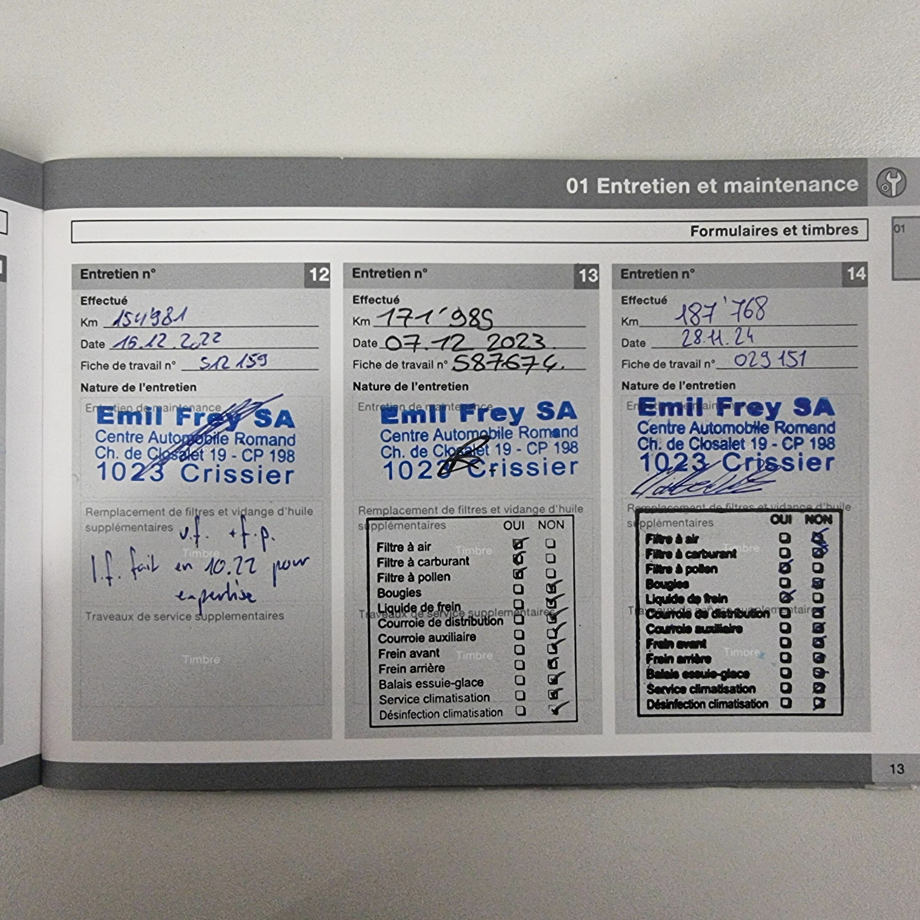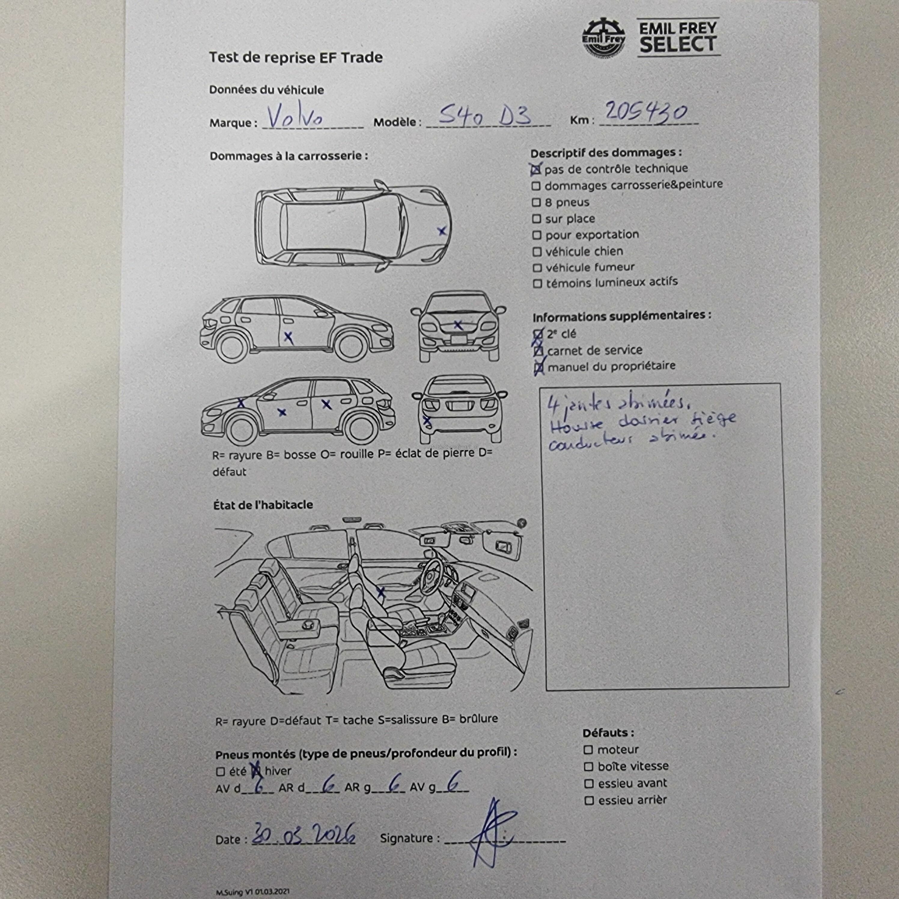 Pas de contrôle technique (essai en atelier) effectué