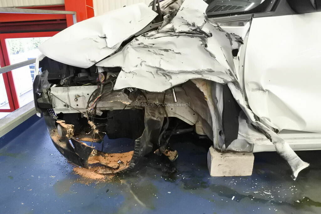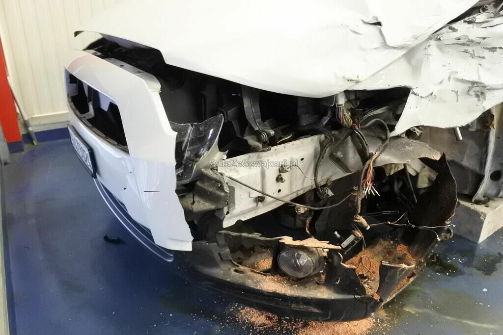 Die Stossstange mit Anbauteilen, Befestigungen, die Quertraverse, der Scheinwerfer, die Motorhaube, der Schlossträger, der Kotflügel mit Aufnahme, Radhausschale, das Radhaus, das Scheibenrad mit Aufhängung und Lenkung, die Fahrertür sowie der Schweller sind beschädigt. Beide Frontairbags und die Gurtenstraffer vorne wurde ausgelöst.Das Armaturenbrett und die Frontscheibe sind zerstört.