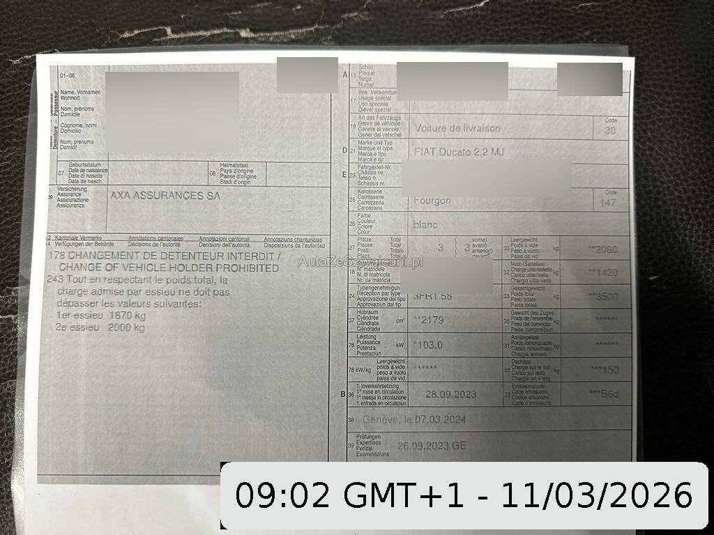 | Fahrzeugausweis | Vorhanden |