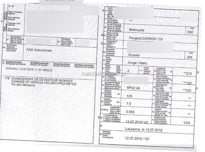 | Fahrzeugausweis | Vorhanden |