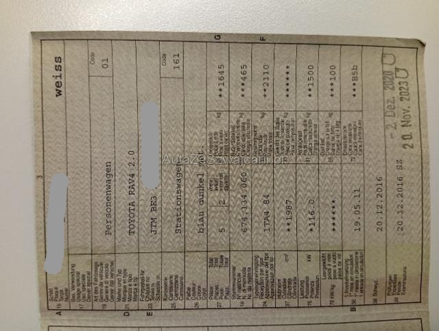 | Condition_and_Equipment | Zustand Fahrzeug ist NICHT fahrbar. Sonstiges Fahrzeugdokumente vorhanden. Schlüssel Beide Schlüssel vorhanden. --- Links Linke Seite beschädigt. Tür vorne links ist eingedrückt. Rechts Rechte Seite beschädigt. Anstoss rechts im Bereich der A-Säule. Tür vorne rechts ist eingedrückt. Front Kotflügel vorne rechts eingedrückt. Kotflügel vorne links eingedrückt. Kotflügel vorne rechts und links eingedrückt. Motorhaube eingedrückt. Frontblech/Maskenblech eingedrückt. Radhaus vorne rechts eingedrückt / gestaucht. Längsträger vorne rechts gestaucht. Fahrzeugvorbau verschoben. Fahrzeugvorbau nach links verschoben. Motor Risiko Motor. Risiko Getriebe. Alle Kühler vorne sind eingedrückt. Achse Vorderachse ist beschädigt. Aufhängungsteile vorne rechts beschädigt. Risiko Lenkung. Elektrik Risiko Steuergeräte. Kabelstränge verbrannt, beschädigt, abgerissen. Innenraum Fahrerairbag ausgelöst. Armaturenbrett ist beschädigt. Gurtstraffer ausgelöst. Glas Windschutzscheibe ist gerissen. Weitere Beschädigungen Beurteilung auf Grund der Schadenfotos. --- Serienaustattung Klimaautomat Airbag Fahrer und Beifahrerseite Elektronische Wegfahrsperre Sitzheizung vorne Fahrersitz elektrisch verstellbar Elektrische Fensterheber vorne + hinten Aussenspiegel elektrisch verstellbar und heizbar Tempomat Servolenkung Nebelscheinwerfer Zentralverriegelung mit Fernbedienung Innenspiegel automatisch abblendbar Lenkrad verstellbar Kopfairbag vorne und hinten Lederlenkrad mit Lederschaltknauf Scheibenwischer mit Regensensor Leichtmetallfelgen 17" Aussenspiegel elektrisch anklappbar Audiofernbedienung am Lenkrad Stabilitätskontrolle VSC + Traktionskontrolle TRC Seitenairbags vorne Rücksitze verschiebbar und Lehne abklappbar Radio/ CD-Wechsler 6-fach Knieairbag Fahrer Dämmerungs-Sensor Höhenverstellbarer Fahrersitz Interieur in Leder Abgedunkelte Scheiben hinten Bluetooth-System Toyota Smart entry-start/ Schliess- Startsystem Reifen-Reparatur Set ABS und EBD Elektr. Bremskraftverteilung inkl. BA Multi-Informationsdisplay Hill Start Assist Control HAC Innenspiegel mit integriertem Rückfahrmonitor Keine Gewähr auf die Angaben der Serienausstattungen Sonderausstattung Dachreling schwarz Metallic-/ Mica Lackierung DAB Digital Audio Broadcast 4 Winterräder 16"/ Leichtmetallfelgen Ausstattung Anhängerkupplung Klimaanlage Leichtmetall-Felgen Metallic-Lackierung |