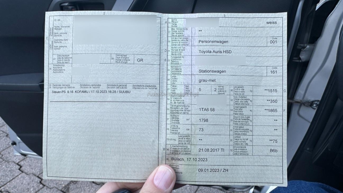 | Fahrzeugausweis | Vorhanden |