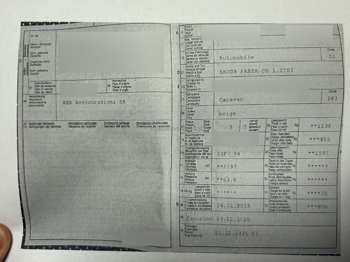 | Fahrzeugausweis | Vorhanden |