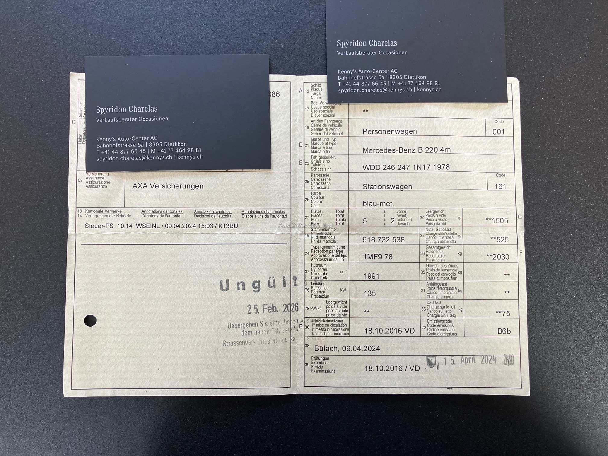 | Kommentar | Services wurden gemäss Vorbesitzer gemacht aber leider keine Nachweise vorhanden. Bekannte Mängel: Stossstange vorne muss lackiert werden Hupe funktioniert nicht (könnte mit einfach montierte Stossstange zusammen hängen). Service fällig. Kratzer Stossstange hinten. Brandloch Fahrersitz. Jede Gewährleistung, soweit nach Gesetz möglich, wird wegbedungen, insbesondere sind Wandelung und Minderung ausgeschlossen. Der Käufer bestätigt mit seinem Gebot, dies anzuerkennen und verpflichtet sich, das ersteigerte Fahrzeug umgehend gegen Barzahlung oder Überweisung abzuholen. Der Preis ist fix und nicht mehr verhandelbar! Es wird grundsätzlich kein Werkstatttest durchgeführt. Fahrzeug kann vor Ort besichtigt werden. Er ist fix eingetauscht, wenn das Gebot genügend ist, wird er an den Höchstbietenden gegeben. Viel Erfolg beim bieten. |