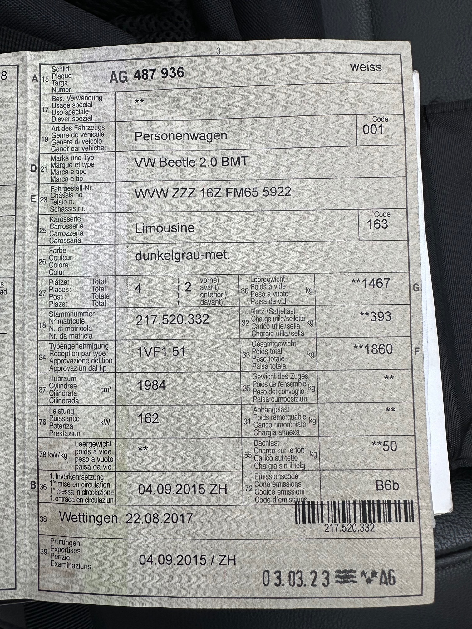 | VIN | WVWXXX |
