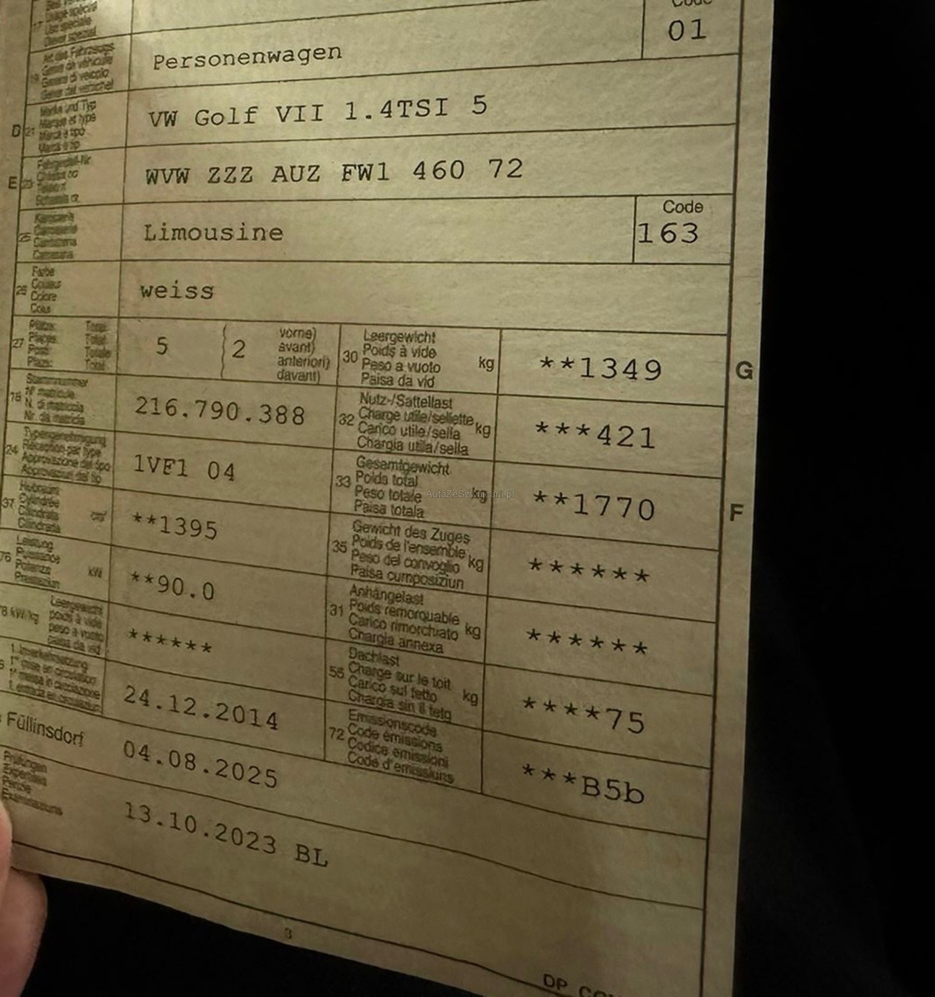 | VIN | WVWXXX |