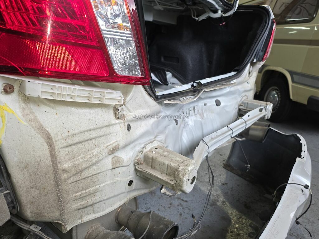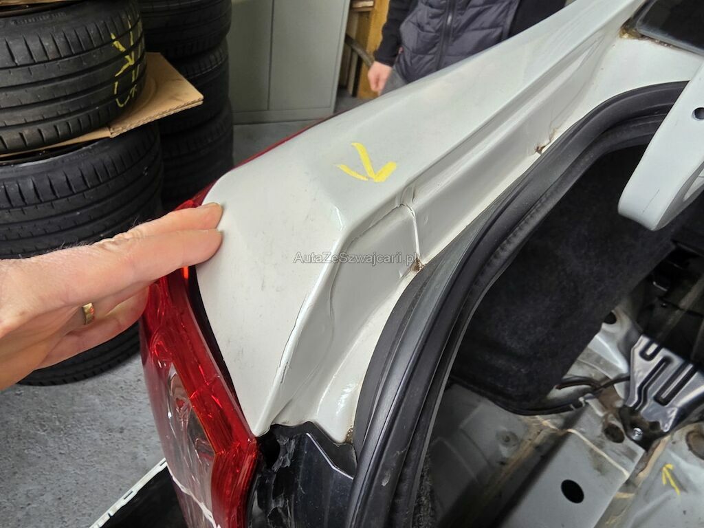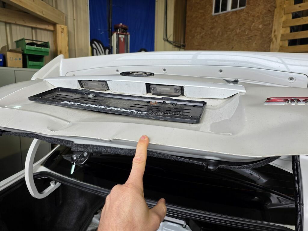 Heckschaden: Stossstange, Heckdeckel, Heckleuchen, Spoiler, Heckblech, Reserveradmulde und Seitenwaände beschädigt.