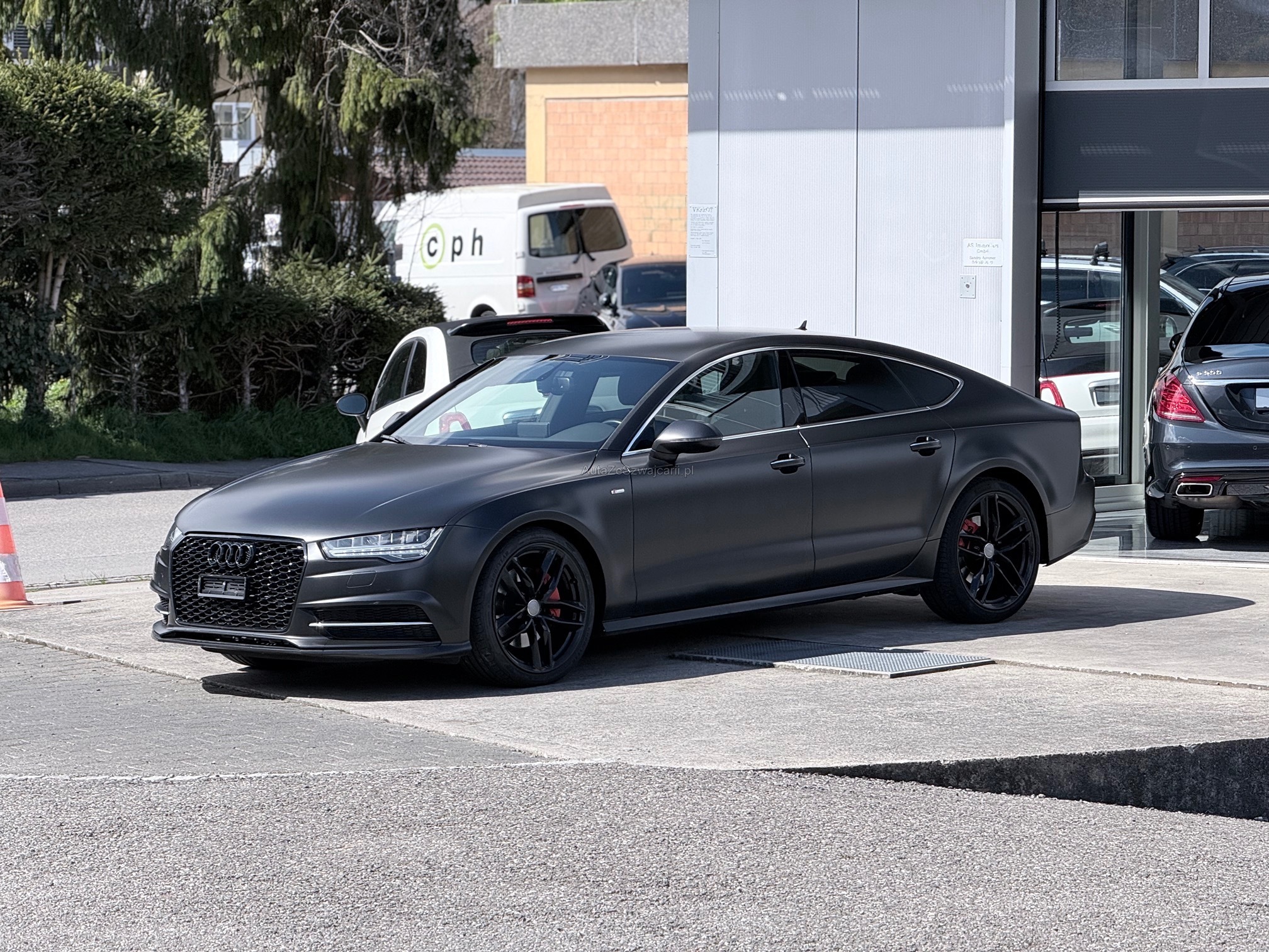 | Kommentar | Fahrzeug ist schwarz matt foliert; Originallack ist dunkelblau 2 Schlüssel; 4-fach bereift Sommer Aluminium bei Mittelkonsole teilweise gedellt und verkratzt sowie Leder in diesem Bereich ebenfalls leicht beschädigt; Fach bei Mittelarmlehne löst sich der Stoff; 1x leichte Blasenbildung auf Folie bei Haube; Vorne links kleiner Schaden an Stossfänger; Vorne unten rechts kleine Beschädigung an Spoilerlippe; Drehknopf für Helligkeit der Innenraumbeleuchtung fehlt Ansonsten ist das Fahrzeug für die Laufleistung in gepflegtem Zustand. Uns sind bei der Probefahrt keine Mängel aufgefallen. Ohne jede Garantie. Zustand gemäss Bilder. Ungereinigt ab Platz. Es wurde kein Test am Fahrzeug vorgenommen. Für sichtbare und unsichtbare Mängel wird keine Haftung übernommen. Kauf auf eigenes Risiko. Jede Gewährleistung, soweit nach Gesetz möglich, wird wegbedungen. Insbesondere sind Wandelung und Minderung ausgeschlossen. |