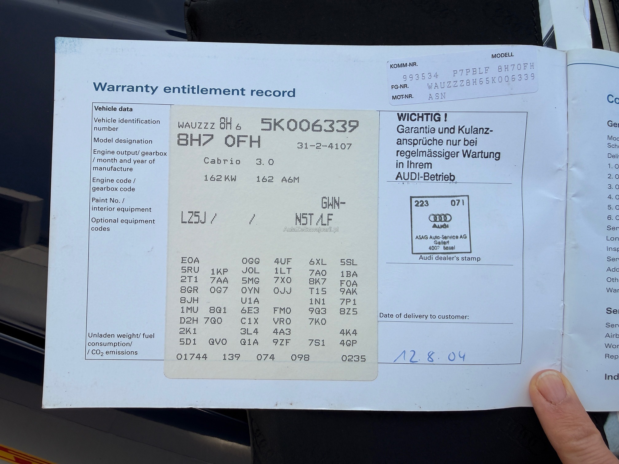 | VIN | wauXXX |
