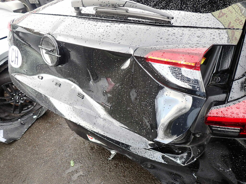 Heckklappe, Heckstossfänger, Querträger, Heckblech und Kofferboden eingedrückt; Spaltmass Seitenwand rechts zu Türe hinten rechts ungleich; Auspuffanlage gestaucht