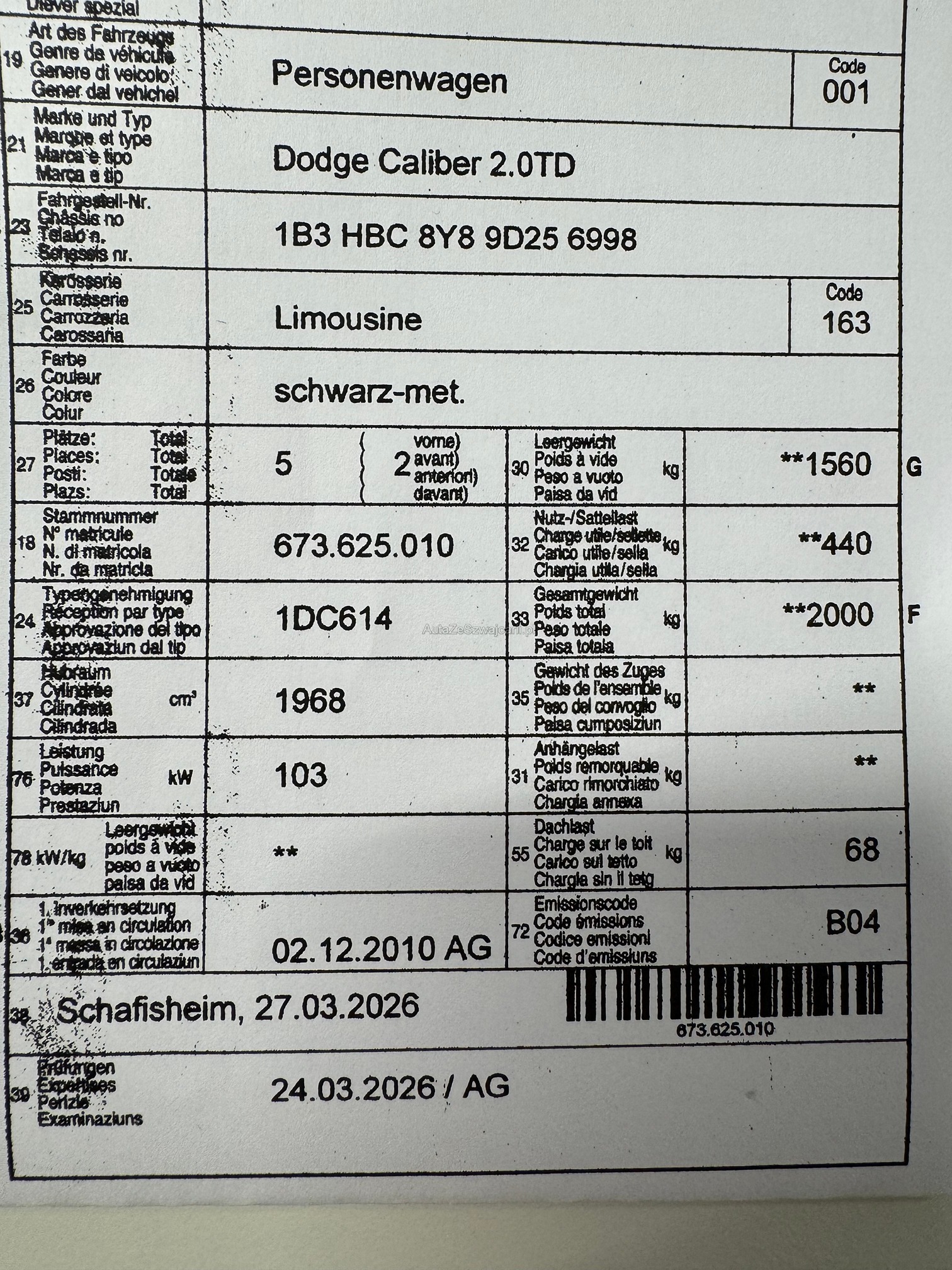 DODGE Caliber 2.0TD
